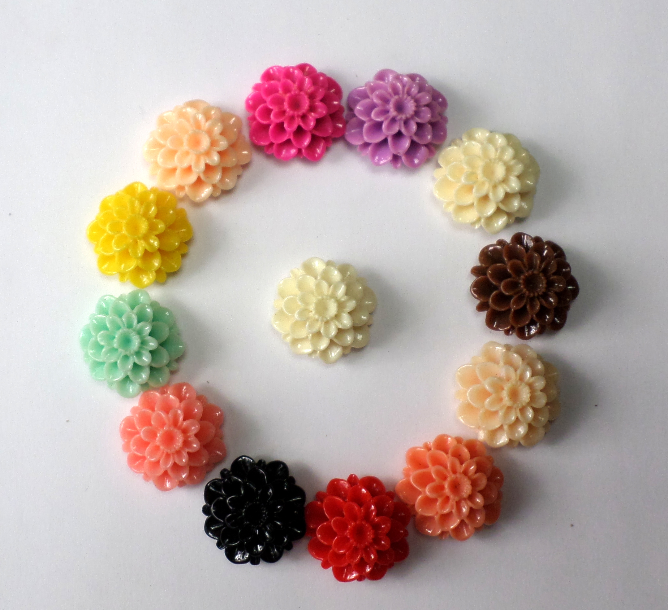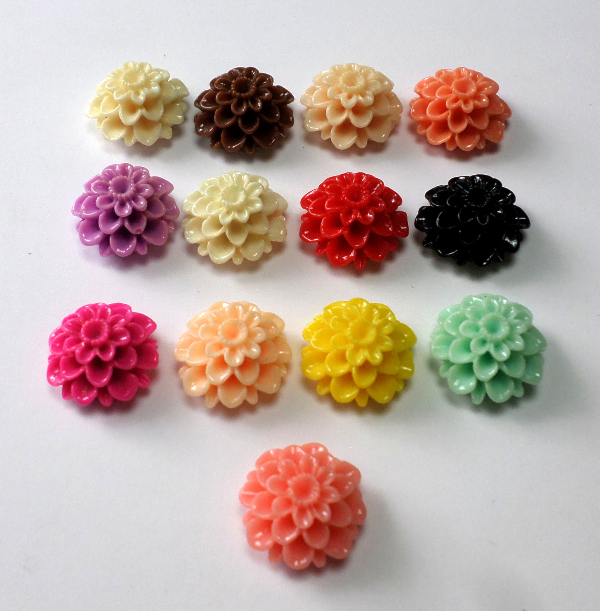 You are buying 13 Different Colors of 20 mm Round Acrylic Layers of Flowers Cameos. You will receive one each Black, Red, Fuchsia, Purple, Brown, Ivory White, Pink, Coral, Yellow, Peach, Dark Peach & a Bluish Green, & White which is in the Center of the pictures. 13 Different Colors in all. They fit just perfect into a 15 mm pendant and also a 20 mm pendant you just have to center it. The bottom is 15 mm round & the outside measures 20 mm. These are really nice, they show a layer of flowers that ends up in the middle, made of acrylic. The molding process of these are just great, no flaws. I have several different settings these will fit in. They look very detailed for their size. I have lots of Great Bails, Bracelets, Cameos, Chains, Connectors, Jump Rings, Lockets, Pendants, Pins, Rings & Settings so, just look at all my listings. All of these are offered in groups of 8 of each color. The Peach is item #361313536270, black is item #360471677867, the purple is item #110911243397, the ivory white is item #110911244702, the fuchsia is item #110911248634, dark brown is item #360471675974, white is item #110911244691, coral color is item #110911248590, pink is item #110922577790, dark peach color is item #110911243392, the bluish green is item #110911248592, red is item #360478420850, yellow is item #110911248581.