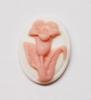 6 of 18x13 mm Pink over White Single Lily Cameos, Very Nice