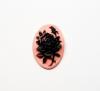 6 of 18x13 mm Black over Pink Rose & Bud Motif Cameos, Nice