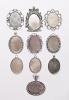 11 Different 40x30 mm Antique Silver Victorian Deco Brooch Pin or Pendant Settings, All Very Nice