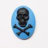 6 of 25x18 mm Blue over Black Skull & Cross Bones Cameos, Nice