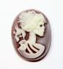 6 of 25x18 mm White over Brown Zombie Skeleton Lady Cameos, Nice