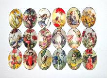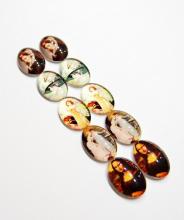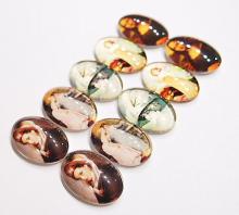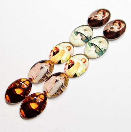 You are buying 10 of 25 mm x 18 mm Vintage Looking Glass Cameos with 5 different Scenes. You will receive 2 of each of these five different gorgeous 25 mm x 18 mm Glass Cameos. First from left to right is a young woman wearing a hat looking over her shoulder in a portrait looking scene. Next, are two Victorian Dressed Women in gowns, one of them is lifting her dress a little showing her petticoat. Next, is a Beautiful Woman in a Large Feather Hat with a Victorian Style gown & necklace. Next, is a Redheaded Girl holding a wand & wearing a shawl, the colors are so bright and vibrant. Last is the famous portrait pose of Mona Lisa. All of these have Gorgeous color combinations. I have lots of different styles & Colors of settings these will fit in. They all look very detailed for their size. I have lots of Great Bails, Bracelets, Cameos, Chains, Connectors, Jump Rings, Lockets, Pendants, Pins, Rings & Settings so, just look at all my listings. All of these are offered in groups of 2 of each. Starting left to right is the 25 x 18 mm Victorian Bonnet Lady item #360478422145, next is the 2 women in long dresses item #111311099749, next is the feather hat lady item #360471679676, next is the Redhead Lady item #77110911253395, and the last is Mona Lisa item #110911243398. I also have a group of 18 different Angels or Fairies item #111210026164 in 25x18 & in 40x30 mm item #111563956363 as shown in the last picture, sold separately. I have lots of other Glass cameos in several colors/styles and sizes so give them all a look.