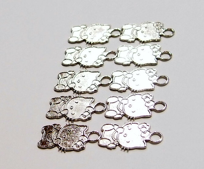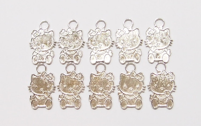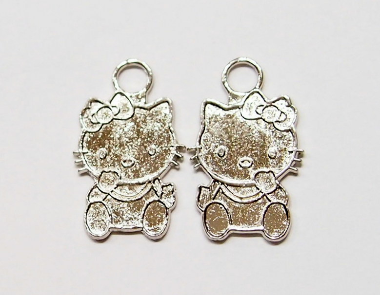 10 Silver Cute Cat Earrings or Charms, Very Nice