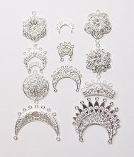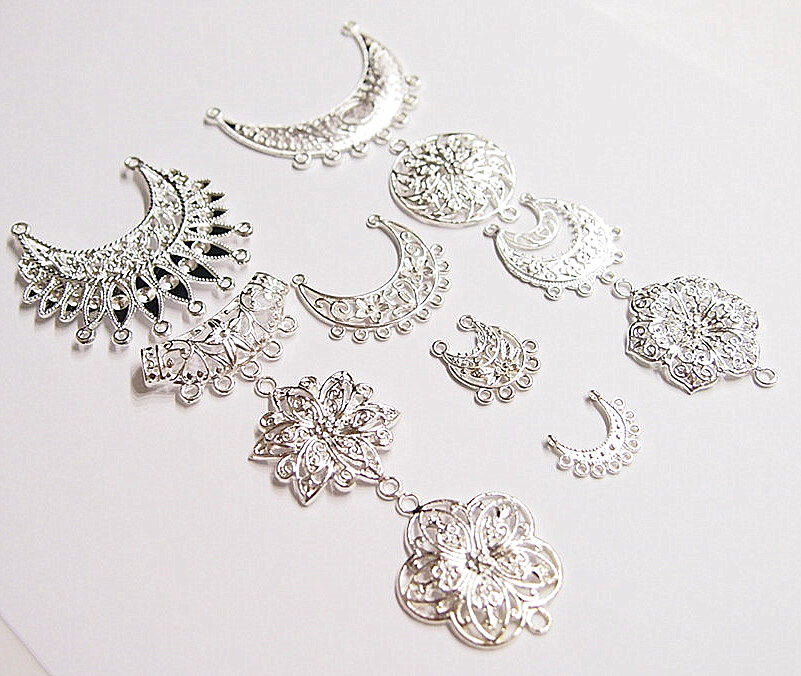 You are buying 11 different Silver Plated Jewelry Connectors. These are all just gorgeous. These will make any project you need to start or finish look even better. These connectors are originally from the 1900-1930's, I only had a few left and found a company to make these for me and they are gorgeous. These are all Silver plated. I have lots of great cameos, settings, connectors and pendants so, just look at all my listings. Several of these are listed individually in groups so, if you need more information on each item, just look at that listing. I also offer this same group of connectors in Shiny Gold item #360720310801 as shown in the last picture. I also have 2 groups of 20 different connectors in Antique Gold item #360942876405 and Antique Silver item #360942863935, and they are both sold separately.