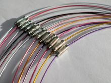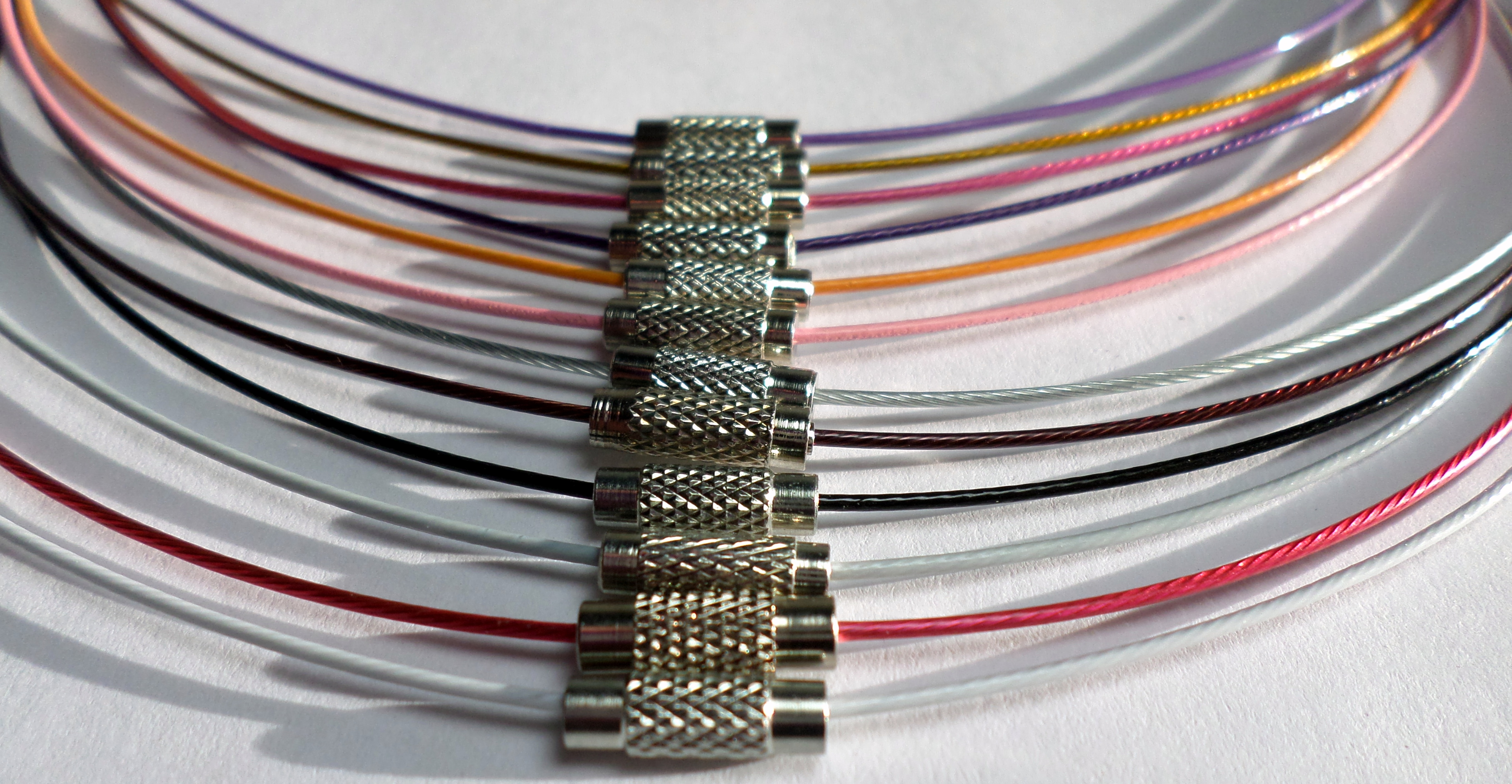 You are buying 12 different Colors of 18" (inch) Vinyl Coated with a screw together Barrel Clasp Necklaces. These will let you have a different color necklace for every pendant or occasion. The ends are only 2 mm in diameter (as seen in the picture) which makes these fit or go through almost any pendant or bail. These are fantastic in that you will know your pendant or special piece (Family Heirloom) is not going to slide off & be lost or broken because of the secure way the screw barrel clasp engages. These are made of strands of rhodium (steel) wire that are coated with a vinyl sheath. You will receive one White item #757755034204, one Red item #419556784489, one Blue item #092716134647, one Black item #570636168146, one Brown item #815729949425, one Silver item #749363825351, one Pink item #586110743947, one Carnelian item #591161216529, one Purple item #719863535869, one Burgundy item #649440593352, one Gold item #144406673459, and one Violet Purple item #380361770107. I have lots of Great Bails, Bracelets, Cameos, Chains, Connectors, Jump Rings, Lockets, Pendants, Pins, Rings & Settings so, just look at all my listings. I also offer 2 colors similar to this (White/Silver) item #360958546644 & (Black) in 20", item #854546536481.