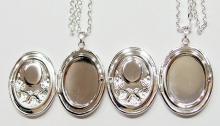You are buying 2 of 10x8 mm Silver Plated Victorian Style Etched Floral Locket Pendant Settings with matching Chains. The front of these are made for 10 mm x 8 mm Cameos or Cabochons. These have a 8 mm jump ring and an 18" Matching chain with it. On the inside you can add anything you want as there is room for up to a 20 mm x 15 mm on either side so you can put whatever you want to put in these very nice looking lockets. These are exactly what you need for your Jewelry making or Craft designs or Gifts. These have never been used & very nice looking and solidly made. Cameos or cabochons or Whatever, will have to be glued in, no prongs. I have lots of Great Bails, Bracelets, Cameos, Chains, Connectors, Jump Rings, Lockets, Pendants, Pins, Rings & Settings so, just look at all my listings. I have these in 3 other Colors & in a group of 4 Colors as shown in the third from last picture item #360936588876, sold separately. I also have lockets like these in 18x13 mm item #360471679688 as shown in the next to last picture and in 40x30 mm item #111347909726 as shown in the last picture, with and without chains, both sold separately.