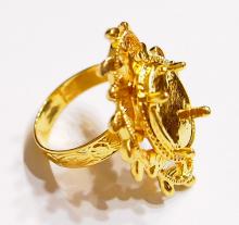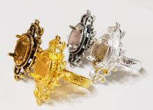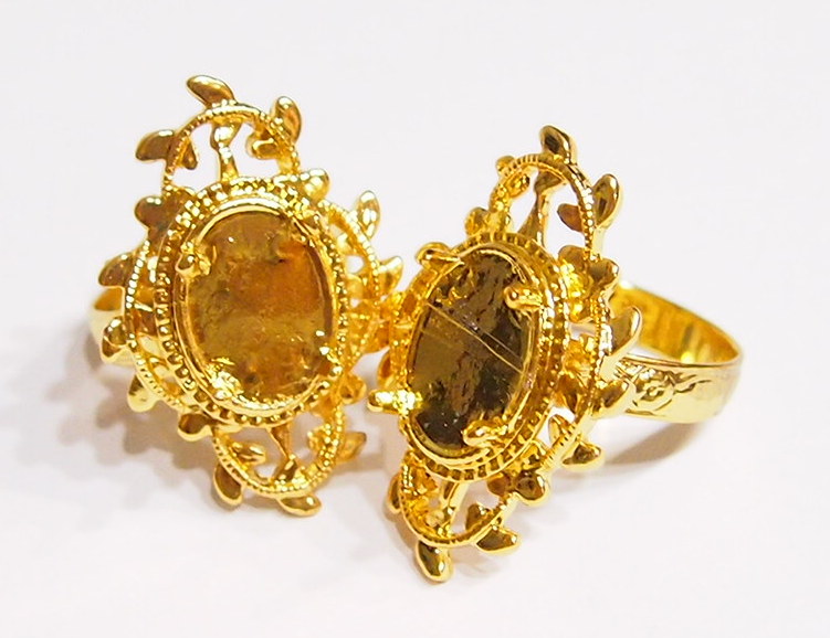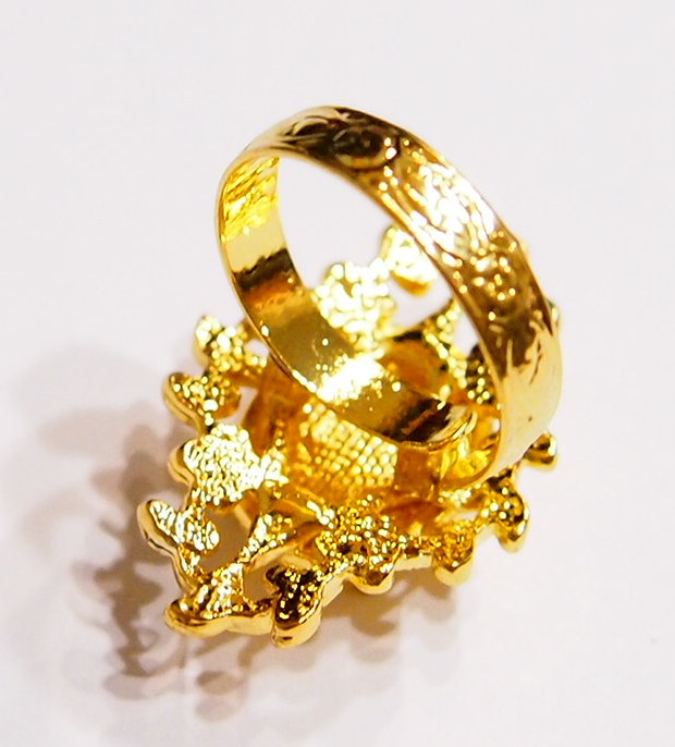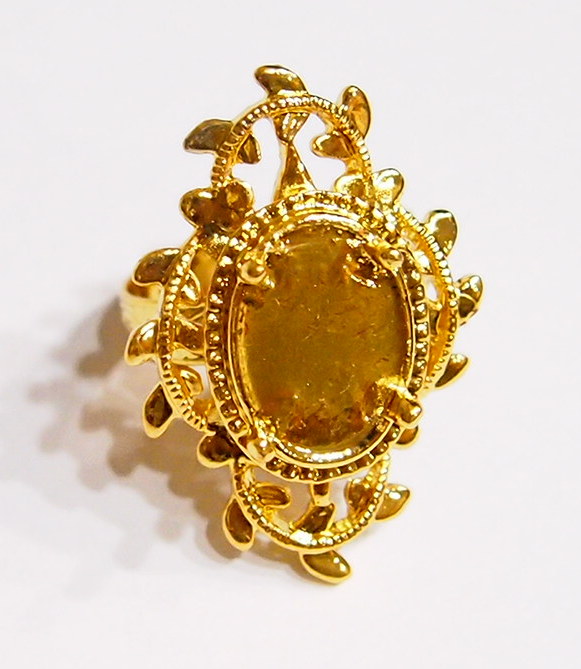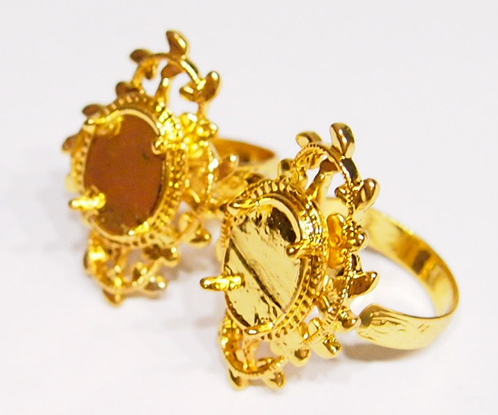 You are buying 2 of 14 mm x 10 mm Shiny Gold Plated Big Loops & Leaves Victorian Adjustable Ring Settings. These Ring settings are originally from the 1900-1930's, I only had a few left and found a company to make these for me and they are gorgeous. They have Four Big Sweeping Loop with leaves coming off the loops design and has a scallop edge around the setting. These are great because the adjustable band is under the setting & it has the gorgeous Victorian style etchings all around it. You will have to glue in any cameos or cabs, there are 4 prongs that are for looks, not to be bent. The actual size of the setting is 16 mm x 14 mm, but a 14 mm x 10 mm fits perfectly. Even though this is an adjustable band, everything is really sturdy and well made. These have never been used and are all new. These have a gorgeous Victorian look to them. I have lots of Great Bails, Bracelets, Cameos, Chains, Connectors, Jump Rings, Lockets, Pendants, Pins, Rings & Settings so, just look at all my listings. I have these in 3 other Colors & in a group of 4 Colors as shown in the next to last picture item #110911242497. I also offer a group of 9 Different Styles of Rings 14x10 (2) & 18x13 (7) mm in Gold as shown in the last picture item#360483150197.