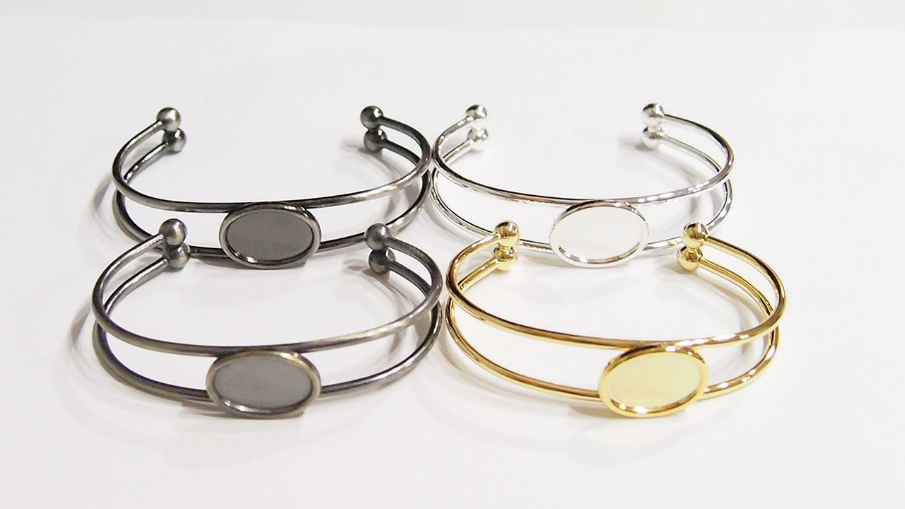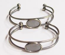 You are buying 2 of 18 mm x 13 mm Antique Gold Plated Cuff Bracelet Settings for Cameos or Cabochons, or Glass. These are vintage reproductions and are brand new. These are very sturdy and cameos or cabochons will have to be glued in. The biggest size that will fit in these are 18 mm x 13 mm. Since they are a solid back, you could go down in size a little if you had an odd size cameo or cab to try & fit. I have lots of Great Bails, Bracelets, Cameos, Chains, Connectors, Jump Rings, Lockets, Pendants, Pins, Rings & Settings so, just look at all my listings. I have these in 3 other Colors & in a group of 4 Colors as shown in the last picture item #111177269688, sold separately. I have several other Styles/Sizes & Colors of Cuff Bracelets.