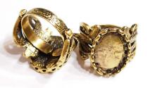 You are buying 2 of 18 mm x 13 mm Antique Gold Plated Wide Flower Band Victorian Adjustable Ring Settings. These settings are originally from the 1900-1930's, I only had a few left and found a company to make these for me and they are gorgeous. They have a gorgeous large flower pattern that goes half way around the band with a big scallop design around the setting. These are great because the adjustable band is under the setting & it has the gorgeous Victorian style etchings all around it. You will not be disappointed in the quality, it is excellent and if I was setting any cameos or cabs, I would use these. You will have to glue in any cameos or cabs. Even though this is an adjustable band, everything is really sturdy and well made. These have never been used and are all new. Since they are a solid back, you could go down in size a little if you had an odd size cameo or cab to try & fit. I have lots of Great Bails, Bracelets, Cameos, Chains, Connectors, Jump Rings, Lockets, Pendants, Pins, Rings & Settings so, just look at all my listings. I have these in 3 other Colors & in a group of 4 Colors as shown in the next to last picture item #112446711198, sold separately. These are also included in a group of 9 different antique gold Rings as shown in the last picture item #111670846721, sold separately.