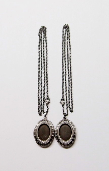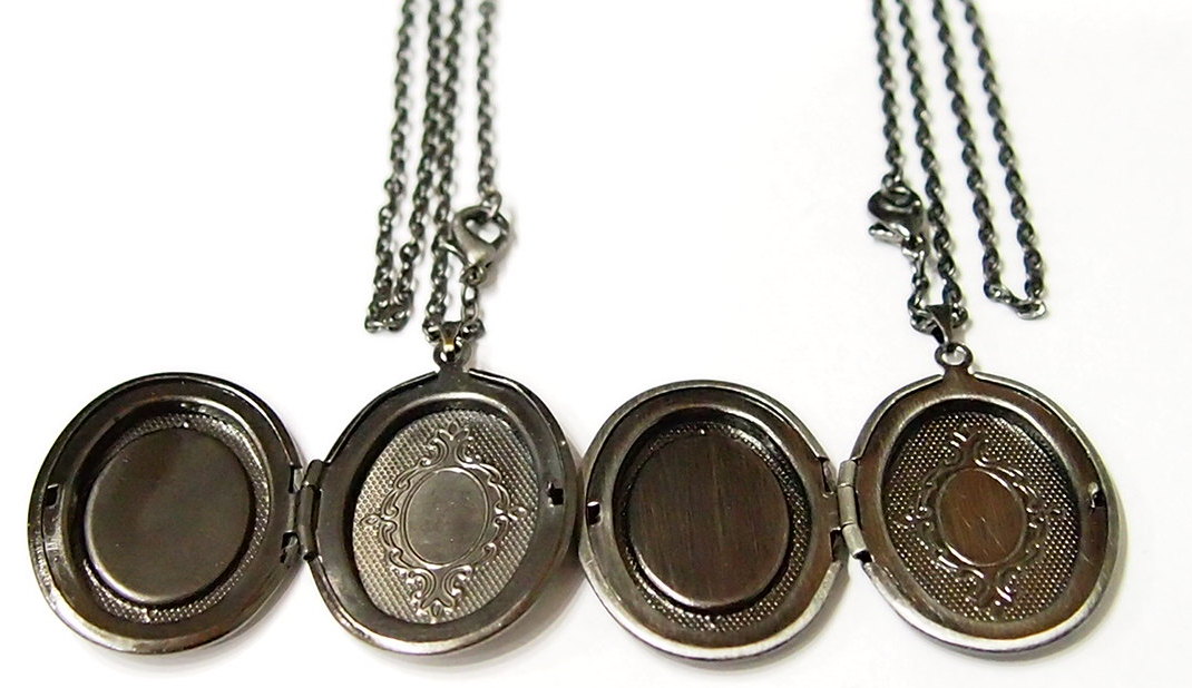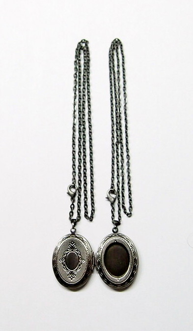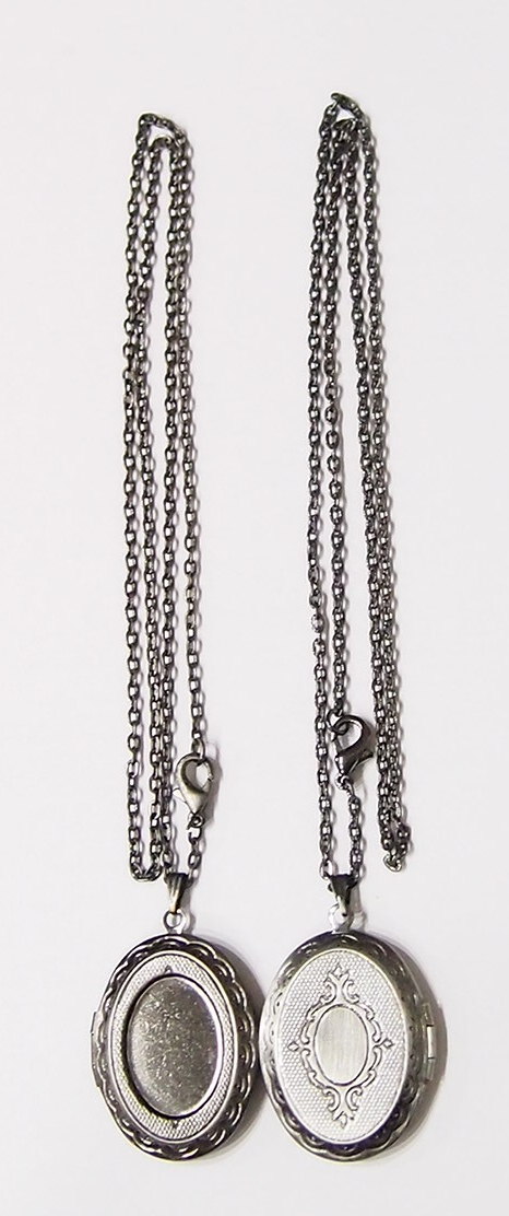You are buying 2 of 18 mm x 13 mm Antique Silver Plated Victorian style Lockets with a matching Chain. These are made for 18 mm x 13 mm cameos or cabochons. These have a 8 mm jump ring and an 18" matching chain included. These are exactly what you need for your Jewelry making or craft designs. The back side has Victorian Style etchings on it. On the inside you can add your picture or cherished keepsake on either side. Since they have a solid 18x13 mm backing, you could go down in size a little if you had an odd size cameo or cabochon to try & fit. These have never been used, very nice looking and solidly made. Cameos, cabochons, glass, or whatever you want will have to be glued in, no prongs. I have lots of Great Bails, Bracelets, Cameos, Chains, Connectors, Jump Rings, Lockets, Pendants, Pins, Rings & Settings so, just look at all my listings. I have these in 3 other Colors & in a group of 4 Colors item #111357422115, as shown in the last 2 pictures, sold separately. I also have Lockets in 10x8 & 40x30 mm in 4 Colors & in groups of all 4 Colors with and without matching chains.