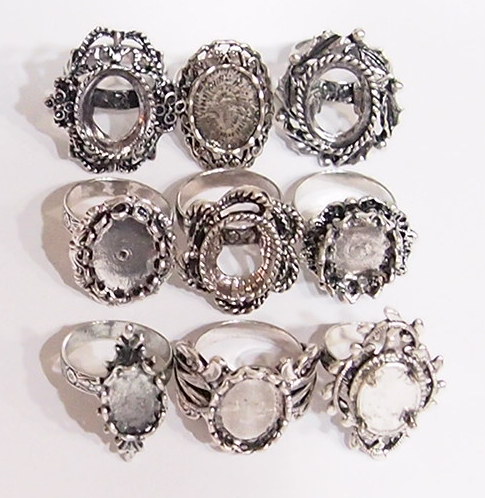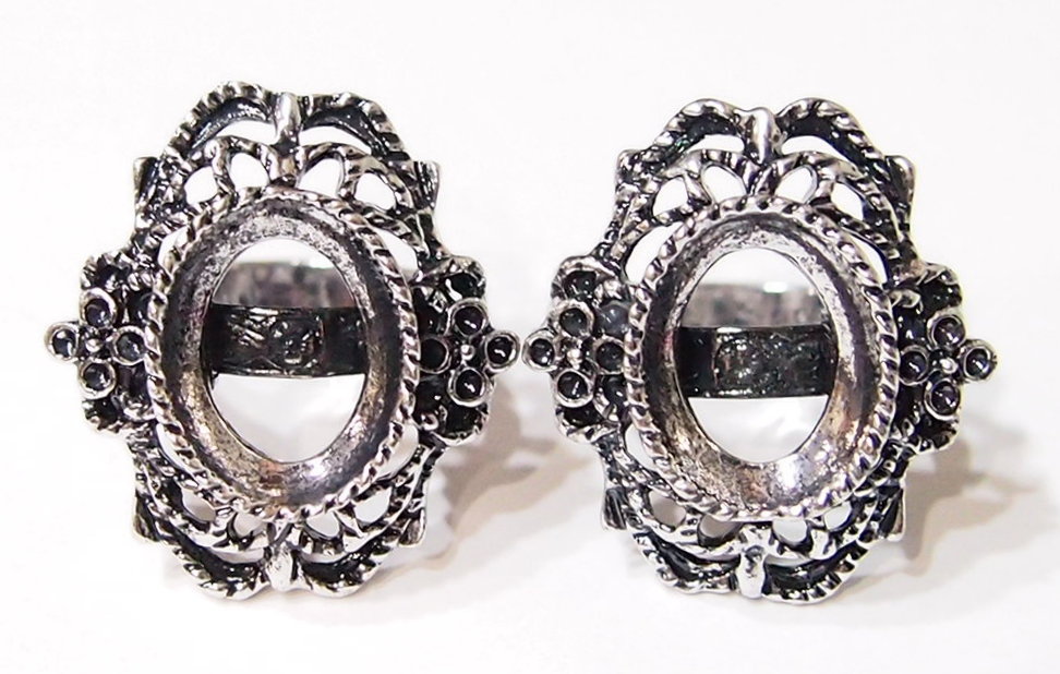 You are buying 2 of 18 mm x 13 mm Antique Silver Plated Victorian Lacy Flower Adjustable Ring Settings. These settings are originally from the 1900-1930's, I only had a few left and found a company to make these for me. They have a gorgeous large Victorian Scroll pattern with two flowers on each end, (you could put crystals in these if you want too, but not needed). There is a small rope design around the setting. Everything about these scream Victorian, even the band is the old style band with the Victorian scroll etched on it. You will have to glue in any cameos or cabs. Even though this is an adjustable band, everything is really sturdy and well made. These have never been used and are all new. These are great because the adjustable band is under the setting & it has the gorgeous Victorian style etchings all around it. You will not be disappointed in the quality, it is excellent and if I was setting any cameos or cabs, I would use these. I have lots of Great Bails, Bracelets, Cameos, Chains, Connectors, Jump Rings, Lockets, Pendants, Pins, Rings & Settings so, just look at all my listings. I have these in 3 other Colors & in a group of 4 Colors as shown in the next to last 2 pictures item #110911242421. I also have a group of 9 Different Styles of Antique Silver Rings as shown in the last picture item #361267476806.