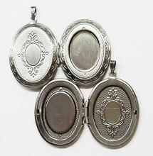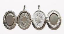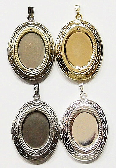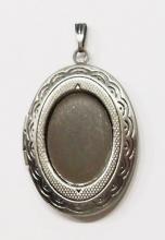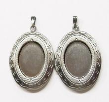 You are buying 2 of 18 mm x 13 mm Antique Silver Plated Victorian Style Etched Locket Pendant Settings, for Cameos or Cabs. The top has a loop ( 2 mm) for your Chain or Jump Ring (which I have 3 Colors & 2 Sizes of) and comes with a swivel bail. These are exactly what you need for your Jewelry making or craft designs. As you can see, the back side has the Victorian style etchings on it. On the inside you can add your picture or your most cherished keepsake on both sides. Since they are a solid back, you could go down in size a little if you had an odd size cameo or cab to try & fit. These have never been used, very nice looking and solidly made. I have lots of Great Bails, Bracelets, Cameos, Chains, Connectors, Jump Rings, Lockets, Pendants, Pins, Rings & Settings so, just look at all my listings. I have these in 3 other Colors & in a group of 4 Colors as shown in the last 2 pictures item #360471679688. I have this same style locket in 4 Colors in 40x30 item #360886176246 without chains & with chains item #111347909726 & in 10x8 mm item #360936588876. These are also offered with a matching chain item # 360569235035.