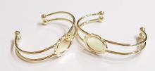 You are buying 2 of 18 mm x 13 mm mm Shiny Gold Plated Closed Loop Cuff Bracelet Settings, you can use these for Cameos or Cabs. These are great, & have a really nice closed loop design or scalloped. These are vintage reproductions and are brand new. These are a cuff bracelet and are Shiny Gold Plated. These are very sturdy and cameos or cabs will have to be glued in. The biggest size that will fit in these are 18 mm x 13 mm. Since they are a solid back, you could go down in size a little if you had an odd size cameo or cab to try & fit. I have lots of Great Bails, Bracelets, Cameos, Chains, Connectors, Jump Rings, Lockets, Pendants, Pins, Rings & Settings so, just look at all my listings. I have lots of other Styles & Sizes of bracelets so give them all a look.