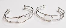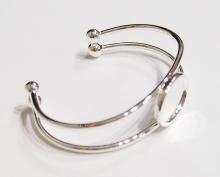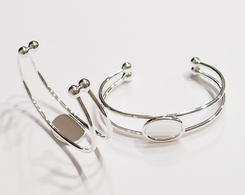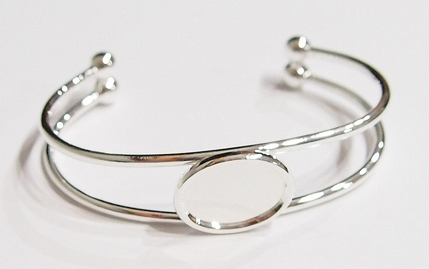 You are buying 2 of 18 mm x 13 mm Shiny Silver Plated Cuff Bracelet Settings, you can use these for Cameos or Cabochons, or Glass. These are vintage reproductions and are brand new. These are a cuff bracelet and are Silver in color. These are very sturdy and cameos or cabochons will have to be glued in. This would make anything look classy. You will not be disappointed in the quality, it is excellent and if I was setting any cameos or cabs, I would use these. The biggest size that will fit in the bracelets are 18x13 mm. Since they have a solid back, you can go down on the size some if you had an odd size cameo or cab to try & fit. I have lots of Great Bails, Bracelets, Cameos, Chains, Connectors, Jump Rings, Lockets, Pendants, Pins, Rings & Settings so, just look at all my listings. I have these in 3 other Colors & in a group of 4 Colors as shown in the last picture item #111177269688, sold separately. I have lots of other Bracelets in several Colors/Sizes and Style so give them all a look.