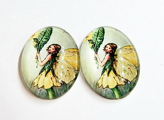You are buying 2 of 25 mm x 18 mm Flower & Leaf Angel/Fairy Glass Cameos. These are so gorgeous, this shows a Angel or Fairy Child holding a Flower & Leaf with beautiful yellow wings. The colors are so bright and vibrant. Gorgeous color combinations. I have several different settings these will fit in. They measure 25x18 mm. They look very detailed for their size. I have lots of Great Bails, Bracelets, Cameos, Chains, Connectors, Jump Rings, Lockets, Pendants, Pins, Rings & Settings so, just look at all my listings. I have these in 17 other Colors & in a group of 18 Colors as shown in the last picture. I have this same cameo in 40x30 Plus, I have lots of other Glass Cameos in 40x30 mm & 25x18 mm & in Groups.