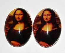 You are buying 2 of 25 mm x 18 mm Mona Lisa Glass Cameos. These are so gorgeous, this shows Mona Lisa in her Famous Pose. The Mona Lisa is a half-length portrait of a woman by the Italian artist Leonardo da Vinci, which has been acclaimed as "the best known, the most visited, the most written about, the most sung about, the most parodied work of art in the world. I have several different settings these will fit in. They measure 25x18 mm. They look very detailed for their size. I have lots of Great Bails, Bracelets, Cameos, Chains, Connectors, Pendants, Pins, Rings & Settings so, just look at all my listings. These are also offered in a group of 5 different glass 25x18 cameos as shown in the last picture. The first one from left to right is item #360478422145, the next with 2 women is item #111311099749, the large hat lady is item #360471679676, the red haired lady is item #77110911253395, and the mona lisa is item #110911243398. I have lots of other Glass Cameos in 40x30 mm & 25x18 mm & in Groups.