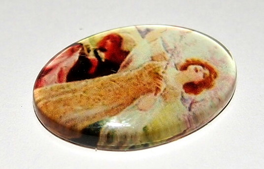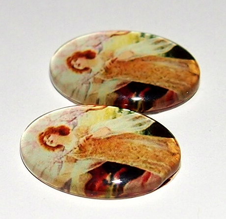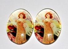 You are buying 2 of 25 mm x 18 mm Redhead Lady Holding a Cherry Blossom Branch Glass Cameos. These are so gorgeous, this shows a redheaded lady holding a cherry blossom branch leaning back, looks like a portrait, the colors are so bright and vibrant. She almost looks like she is singing & wearing a flowing shawl. There is another woman sitting beside her. These will be the centerpiece of any of your cameos. This has a gorgeous color combination. I have several different settings these will fit in. They measure 25x18 mm. They look very detailed for their size. I have lots of Great Bails, Bracelets, Cameos, Chains, Connectors, Pendants, Pins, Rings & Settings so, just look at all my listings.These are also offered in a group of 10 with 5 different glass 25x18 cameos as shown in the last picture. The first one from left to right is item #360478422145, the next with 2 women is item #111311099749, the large hat lady is item #360471679676, the red haired lady is item #77110911253395, and the Mona Lisa is item #110911243398. I have lots of other Glass Cameos in 40x30 mm & 25x18 mm & in Groups.