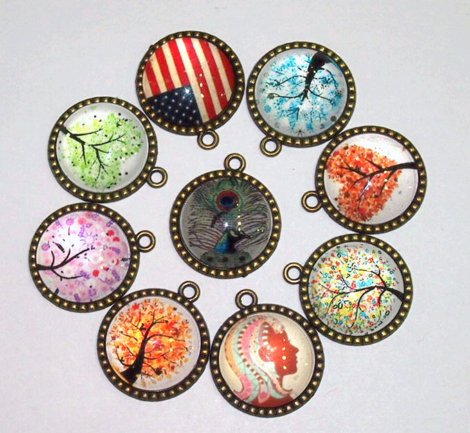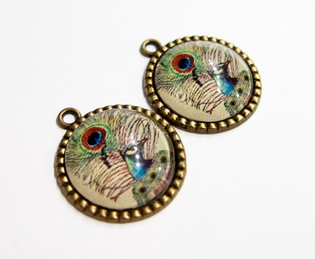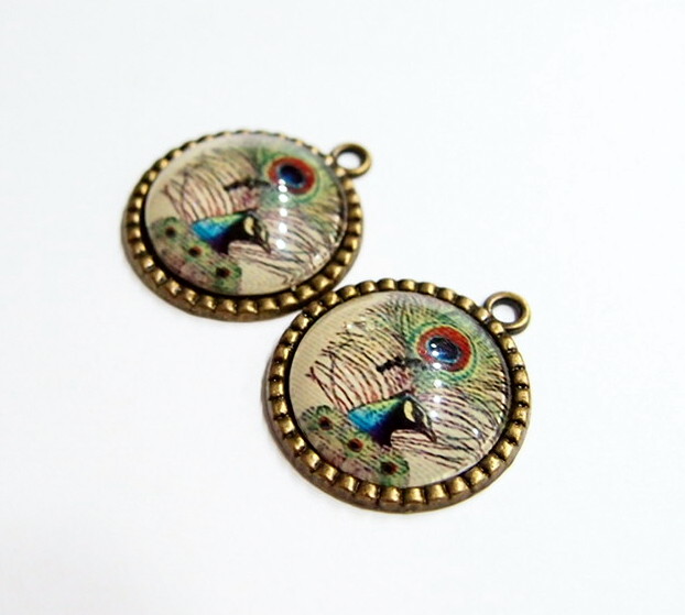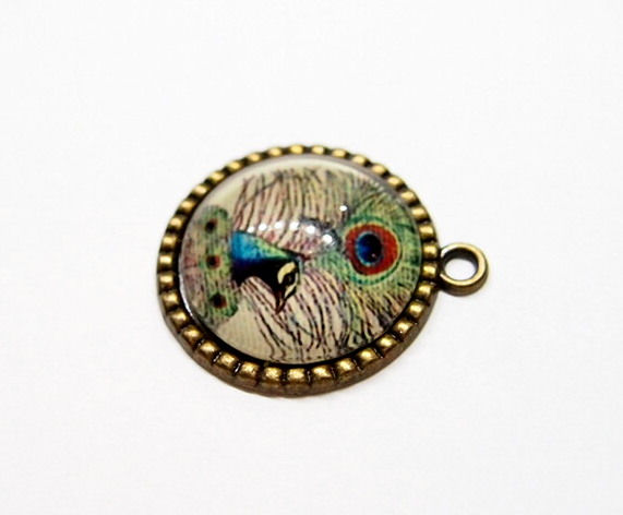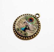 You are buying 2 of 30 mm Round Peacock Antique Gold Plated Pendants. These are of a beautiful Peacock with feather plumage showing. These are well made pendants with lots of brilliant colors in a gorgeous setting. These beautiful pendants have a rope edge around the dome shaped cameo. The top has a nice size loop (3 mm) for your Chain or Cord or Jump Ring (which I have 3 Colors & 2 Sizes of). This is new as with all my cameos & settings. I have lots of Great Bails, Bracelets, Cameos, Chains, Connectors, Jump Rings, Lockets, Pendants, Pins, Rings & Settings so, just look at all my listings. I have these in 8 other Colors & in a group of 9 Colors as shown in the last 2 pictures item #360478420812. I will at your request, mix & match these so pick out which one of the 9 Choices & you can have two different ones of these for one great price. Just leave me a note in the comments section at the bottom of the page.