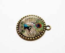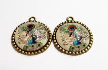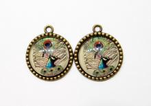 2 of 30 mm Round Peacock Antique Gold Pendants, Very Nice