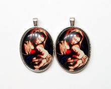 You are buying 2 of 40x30 mm Antique Silver Plated Pendants with Mounted Virgin Mary & Jesus Cameos. These are a gorgeous 40 mm x 30 mm Acrylic Cameo with Mary holding Jesus in her arms already mounted or glued & ready to wear. These pendants are antique silver plated with a deep band and a nice big bail (6 x 4 mm) that will fit most any chain or Jump Ring (which I have 3 Colors & 2 Sizes of). The cameo measures 40 mm x 30 mm and the pendant measures 51 mm x 32 mm including the Bail. I have lots of Great Bails, Bracelets, Cameos, Chains, Connectors, Jump Rings, Lockets, Pendants, Pins, Rings & Settings so, just look at all my listings. I have this same pendant setting in 4 Colors as shown in the last picture item #110911242389, sold separately. I also have this same Mary Cameo in 25x18 mm unset item #111149057461.