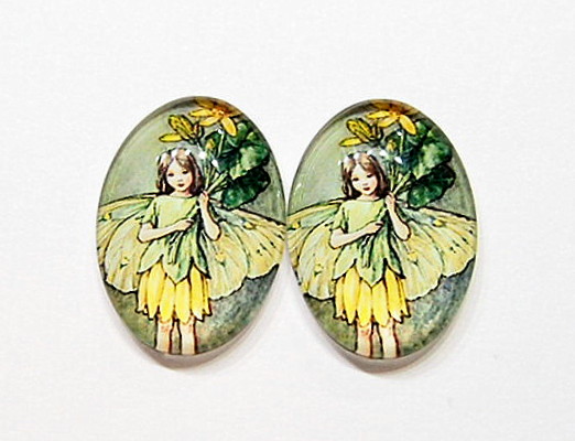 You are buying 2 of 40 mm x 30 mm Carrying Bouquet Angel/Fairy Glass Cameos. These are so gorgeous, this shows a Angel or Fairy Child Carrying a bouquet of flowers with a beautiful yellow dress. The colors are so bright and vibrant. Gorgeous color combinations. I have several different settings these will fit in. They measure 40x30 mm. They look very detailed for their size. I have lots of Great Bails, Bracelets, Cameos, Chains, Connectors, Jump Rings, Lockets, Pendants, Pins, Rings & Settings so, just look at all my listings. I have these in 17 other Colors & in a group of 18 Colors as shown in the last picture item #111563956363. I have this same cameo in 25x18 Plus, I have the group of 18 in 25x18 mm item #111210026164. I have lots of other Glass Cameos in 40x30 mm & 25x18 mm & in Groups.