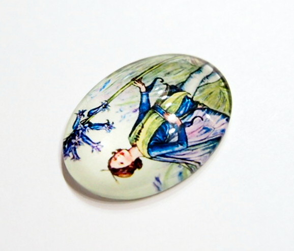 You are buying 2 of 40 mm x 30 mm Child Fairy or Angel Glass Flower Staff Cameos Glass Cameos. These are so gorgeous, this shows a Fairy or Angel Child Standing holding a Staff of flowers with her wings in Blue matching the Colors of her outfit standing in the grass, the colors are so bright and vibrant. Gorgeous color combinations. I have several different settings these will fit in. They measure 40x30 mm. They look very detailed for their size. I have lots of Great Bails, Bracelets, Cameos, Chains, Connectors, Jump Rings, Lockets, Pendants, Pins, Rings & Settings so, just look at all my listings. I have these in 17 other Colors & in a group of 18 Colors as shown in the last picture item #111210026164. I have this same cameo in 25x18 Plus I have lots of other Glass Cameos in 40x30 mm & 25x18 mm & in Groups.
