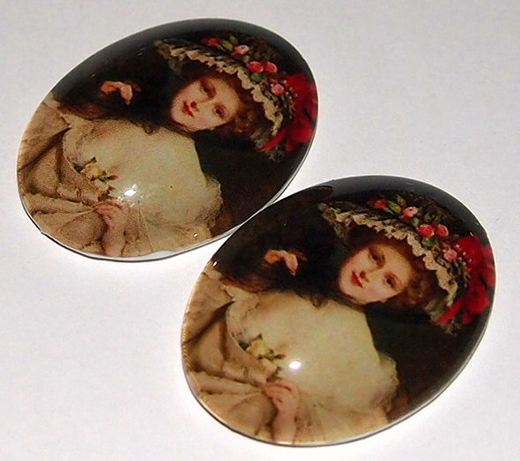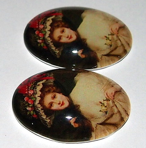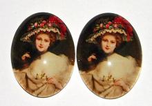 You are buying 2 of 40 mm x 30 mm Victorian Big Floral Hat Glass Cameos. These are so gorgeous, this shows a young pretty lady wearing a Large Floral very pretty Hat & wearing a low cut dress low on her shoulder, it looks like a portrait, the colors are so bright and vibrant. These have a gorgeous color combination. I have several different settings these will fit in. They measure 40x30 mm. They look very detailed for their size. I have lots of Great Bails, Bracelets, Cameos, Chains, Connectors, Jump Rings, Lockets, Pendants, Pins, Rings & Settings so, just look at all my listings. I have these in 3 other Colors & in a group of 4 Colors as shown in the third from last picture item #360482877199, sold separately. I also have a group of 18 different Glass Cameos in 40x30 mm item #111563956363 and the same ones are offered in a group of 18 in 25x18 mm item #111210026164 as shown in the next to last picture, sold separately. I have a group of 10 different Glass 40x30 mm Cameos as shown in the last picture item #110911242391, sold separately. Also offered are several different 25x18 mm Glass Cameos.