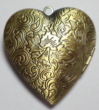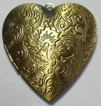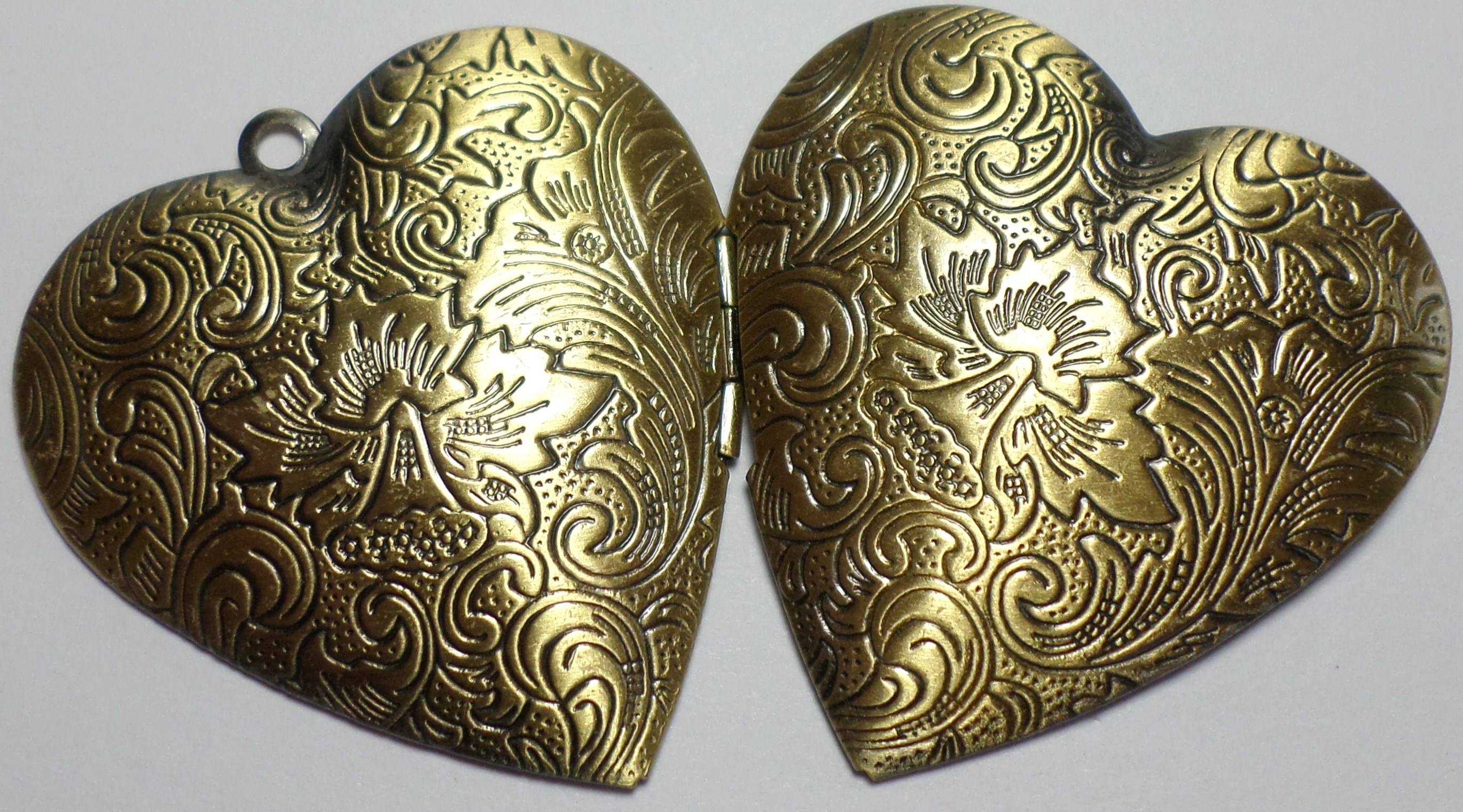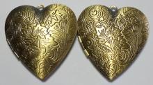 You are buying 2 Antique Gold Plated Victorian Style Etched Heart Locket Pendants. These measure 42 x 40 x 1 mm thick. These have an 3 mm hole at the top for your chains or cords. These are exactly what you need for your Jewelry making projects or craft designs or just a great Gift. The front and back has Beautiful Old Style Victorian etchings on it. On the inside you can add your Pictures, Cherished Keepsakes or whatever on both sides. These have never been used, very nice looking and solidly made. I have lots of Great Bails, Bracelets, Cameos, Chains, Connectors, Jump Rings, Lockets, Pendants, Pins, Rings & Settings so, just look at all my listings. I have these in 3 other Colors & in a group of 4 Colors as shown in the next to last picture. Also offered is a group of 3 Colors, Antique Gold, Shiny Silver and Shiny Gold plated item #161925577236.