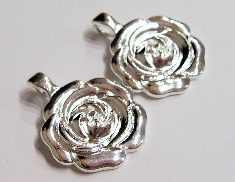 You are buying 2 Silver Plated Rose in Bloom pendants, these are very pretty. There is a nice big bail on these that actually comes open so you can place it on any necklace you want and snap it back into place, they are called enhancers. I have several pendants that do that. These measure 45 mm in Diameter. These are very sturdy. They are in a shape of a Gorgeous Rose with all the pedals in bloom. They are great quality. These are ready to wear. I have lots of Great Bails, Bracelets, Cameos, Chains, Connectors, Jump Rings, Lockets, Pendants, Pins, Rings & Settings so, just look at all my listings. I have these in 3 other Colors & in a group of 4 Colors as shown in the last picture item #111378187986, sold separately.