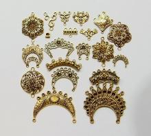 You are buying 20 different Antique Gold Plated Jewelry Connectors. These are just gorgeous. These will make any project you have look even better. These connectors are originally from the 1900-1930's, I only had a few left and found a company to make these for me and they are gorgeous. These are all Antique Gold plated. I have lots of Great Bails, Bracelets, Cameos, Chains, Connectors, Pendants, Pins, Rings & Settings so, just look at all my listings. I also have almost all of these in 3 other colors. All of these are listed individually in groups so if you want to know the exact size of each one, just look at my listings. This same collection is also offered in Antique Silver item #360942863935 as shown in the last picture and are sold separately.
