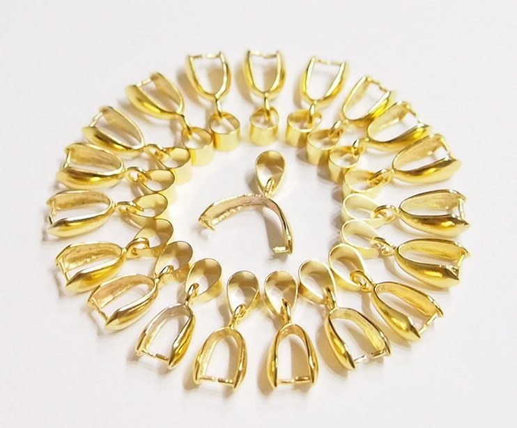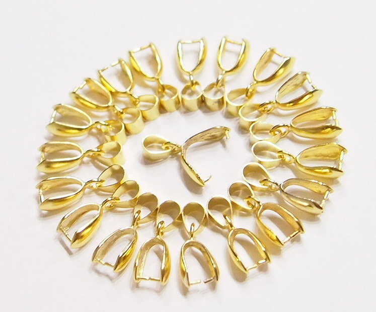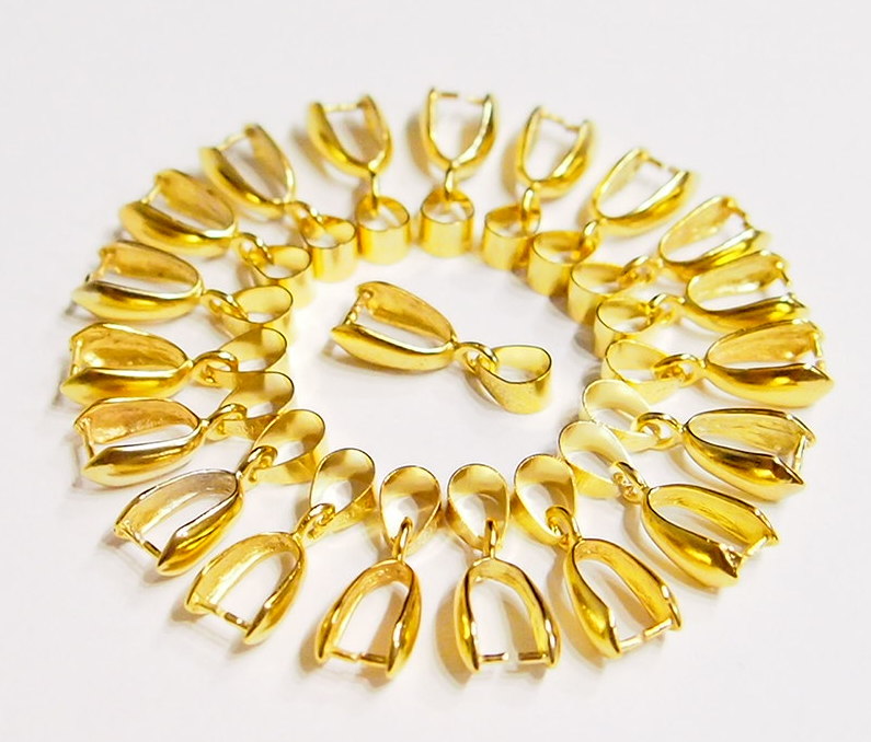 You are buying 20 Medium Gold Plated Pinch Bails. These measure 20 mm long x 7 mm wide with a nice big loop, that will fit most any chain or cord. These are 20 mm in total length, and are 7 mm wide closed & are 5 mm thick. These will open to 10 mm and the grip length is 9 mm. These are exactly what you need to make anything into a pendant or earrings whether its cameos, cabochons, glass, tiles, etc. I have lots of Great Bails, Bracelets, Cameos, Chains, Connectors, Jump Rings, Lockets, Pendants, Pins, Rings & Settings so, just look at all my listings. I have these in 2 other sizes (Small is item #361103510890 and large is item #360919672868) and in 3 sizes of Silver Plated (small, medium and large). I also offer a group of four Colors in Medium size Pinch Bails, Antique Gold, Gold, Antique Silver & Silver as shown in the next to last picture item #361461307483, sold separately. Also offered is a group of 21 different Glue Bails, in 6 Styles & 4 Colors, as shown in the last picture item #110911244722, sold separately.
