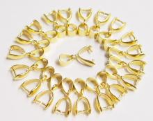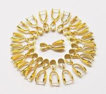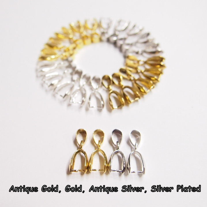 You are buying 20 Small Gold Plated Pinch Bails. These measure 15 mm long x 7 mm wide with a nice big loop, that will fit most any chain or cord. These are 15 mm in total length, and are 7 mm wide closed & are 3 mm thick. These will open to 10 mm and the grip length is 5 mm. These are exactly what you need to make anything into a pendant or earrings whether it is cameos, cabochons, glass, coins or tiles, etc. I have lots of Great Bails, Bracelets, Cameos, Chains, Connectors, Jump Rings, Lockets, Pendants, Pins, Rings & Settings so, just look at all my listings. I have these in 2 other sizes in gold plated (medium is item #360471675585 and the large is item #360919672868) & in 3 sizes of Silver Plated. I Also offer a group of four Colors in Medium size Pinch Bails (I also have them in Small & Large in 2 Colors) as shown in the next to last picture item #361461307483, sold separately. Also offered is a group of 21 Different Glue Bails, in 6 Styles & 4 Colors, as shown in the last picture item #110911244722, sold separately.