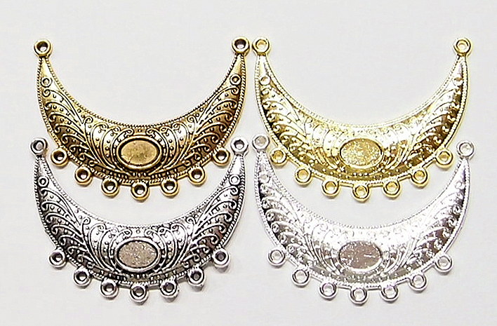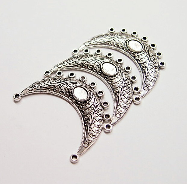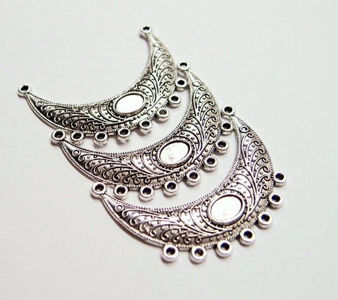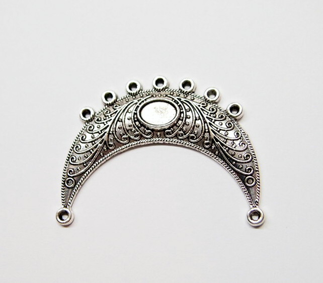 You are buying 3 of 54 mm x 41 mm Antique Silver Plated Focal Pendant Jewelry Necklace Connectors. These are just gorgeous. These will make any project you are starting or finishing look even better. These measure 54 mm x 41 mm. These have a 10 mm x 7 mm Horizontal setting in the middle to mount a small Cameo, Cab or Crystal or just leave it blank because these look fabulous, even without anything there. I have lots of Great Bails, Bracelets, Cameos, Chains, Connectors, Jump Rings, Lockets, Pendants, Pins, Rings & Settings so, just look at all my listings. I have these in 3 other Colors & in a group of 4 Colors as shown in the next to last picture item #360945795713. These are also offered in a group of 20 different antique silver connectors as shown in the last picture item #360942863935, and both are sold separately. I have lots of other styles & sizes of Connectors.