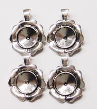 You are buying 4 of 20 mm Round Antique Silver Plated Enhancer Flower Pendant Settings, these fit 20 mm cameos or cabochons. These are very sturdy. They are in the shape of a flower and they have the bonus Enhancer Bail, so you can put these over an existing necklace. They are great quality, not like a lot of the ones listed on other sites because I had these made. Cameos or cabochons will have to be glued in, no prongs. I have lots of Great Bails, Bracelets, Cameos, Chains, Connectors, Jump Rings, Lockets, Pendants, Pins, Rings & Settings so, just look at all my listings. I have these in 3 other Colors & in a group of 4 Colors as shown in the last picture item #360956137703, sold separately.