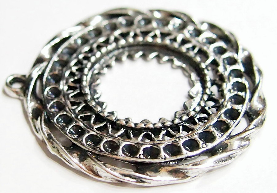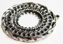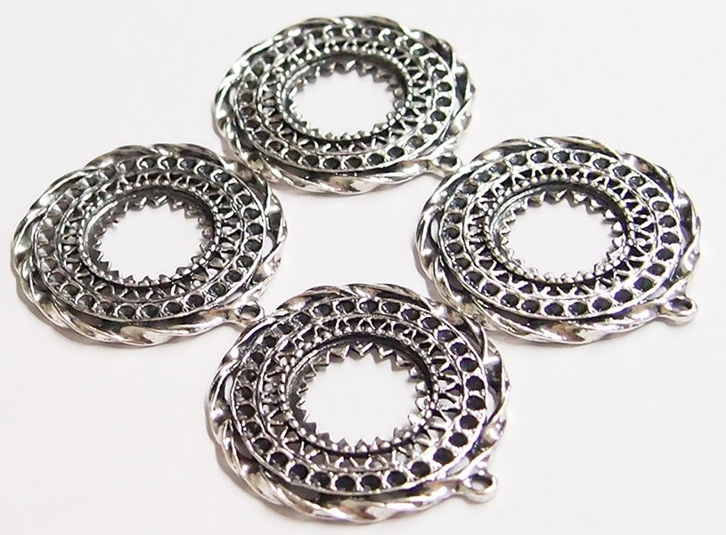 You are buying 4 of 20 mm Round Antique Silver Pendant Settings. These pendants have a GREAT design and as you can see you could use either the front or back to set your cameos or cabochons or glass in. These pendant settings measure 45 mm Outside Diameter. The front side will also hold crystals or cabs if you want it to, but it is decorated enough and looks great without adding anything to them. These are very versatile pendant settings. These settings are originally from the 1900-1930's, I only had a few left and found a company to make these for me and they are gorgeous. These are very sturdy, not flimsy like the new ones are. I have quite a few cameos that fit into these just perfectly. These have a loop (2.5 mm) at the top for your Chain or Cord or, put on a jump ring (which I have 3 Colors & 2 Sizes of). I have lots of Great Bails, Bracelets, Cameos, Chains, Connectors, Jump Rings, Lockets, Pendants, Pins, Rings & Settings so, just look at all my listings. I have these in 3 other Colors & in a group of 4 Colors as shown in the last picture item #360885334768, sold separately.