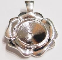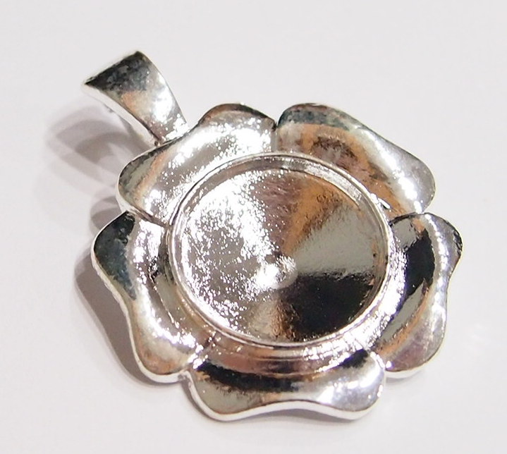 You are buying 4 of 20 mm Round Silver Plated Enhancer Flower Pendant Settings, these fit 20 mm cabs or cameos. These are very sturdy. They are in the shape of a flower and they have the bonus Enhancer Bail, so you can put these over an existing necklace. They are great quality, not like a lot of the ones listed on other sites because I had these made. Cabs or Cameos will have to be glued in, no prongs. I have lots of Great Bails, Bracelets, Cameos, Chains, Connectors, Jump Rings, Lockets, Pendants, Pins, Rings & Settings so, just look at all my listings. I have these in 3 other Colors & in a group of 4 Colors as shown in the last picture item #360956137703. I have several other round settings in lots of Colors & sizes.