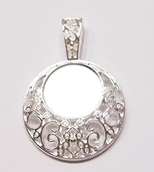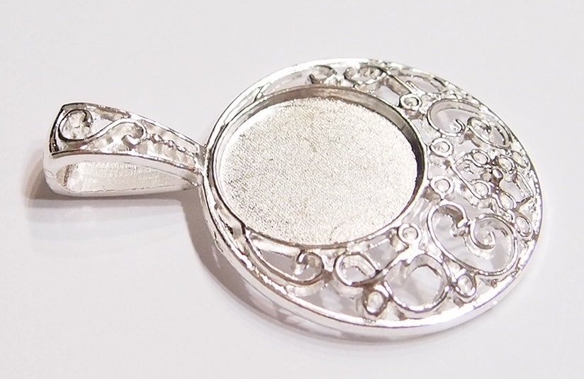 4 of 25 mm Round Silver Decorative Big Bail Pendant Settings, Nice