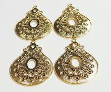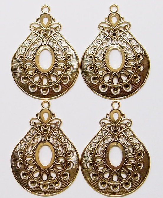 You are buying 4 of 25 mm x 18 mm Antique Gold Plated Teardrop Pendant Settings. These will make anything you put into them look Amazing. These have places for crystals along the outer edge of the setting. They also have a nice size loop at the top. These are Antique Gold Plated. These are not flimsy like some of the ones I have seen listed on other sites. They are a glue in settings. The setting dimensions are 25x18 mm & the outside dimensions are 87 x 63 mm including the loop at the top. The top has a nice size loop (4.5 mm) for your Chain or Cord or Jump Ring (which I have 3 Colors & 2 Sizes of). These are lightweight but very sturdy. These will make your cabs or cameos really stand out with the ornate design made into these Beautiful Settings. I have lots of Great Bails, Bracelets, Cameos, Chains, Connectors, Jump Rings, Lockets, Pendants, Pins, Rings & Settings so, just look at all my listings. I also have these in Antique Silver item #111246328952 and in a group of 2 Colors as shown in the last picture item #111341006192 and both are sold separately.