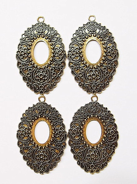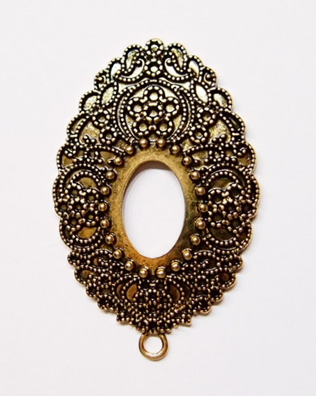 You are buying 4 of 25 mm x 18 mm Antique Gold Plated Beaded Victorian Style Pendant Settings. These settings have a very intricate Victorian beaded with Flowers Design. These have the look of the old Art Deco or Victorian Settings. These settings are originally from the 1900-1930's, I only had a few left and found a company to make these for me and they are gorgeous. These measure 68 mm in length x 44 mm wide including the loop at the top. The top has a nice size loop (3.7 mm) for your Chain or Cord or Jump Ring (which I have 3 Colors & 2 Sizes of). The design is just delicate, but they are very solid, not flimsy like some are. You will not be disappointed in the quality, it is excellent and if I was setting any cameos, cabochons, glass, or whatever you want, I would use these. These will work great for any cameos or cabs, they will have to be glued in. I have lots of Great Bails, Bracelets, Cameos, Chains, Connectors, Jump Rings, Lockets, Pendants, Pins, Rings & Settings so, just look at all my listings. I also have these in Antique Silver item #360471679683.