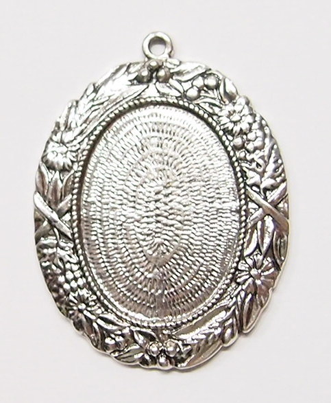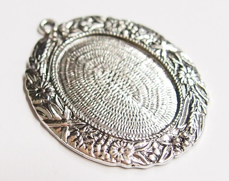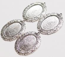 You are buying 4 of 25 mm x 18 mm Antique Silver Plated Flowers & Leaf Pendant Settings. These are very nice, and have a intricate Flowers & leaves design. The settings measure 26 mm x 19 mm & the outer dimensions are 41 mm x 31 mm including the loop. The top has a nice size loop (2 mm) for your Chain or Jump Ring (which I have 3 Colors & 2 Sizes of). A 25x18 mm fits perfectly, just have to center it a little. These settings are originally from the 1900-1930's, I only had a few left and found a company to make these for me and they are gorgeous. The design is just delicate, but they are very solid, not flimsy like the new ones are. You will not be disappointed in the quality, it is excellent and if I was setting any cameos, I would use these. Since they are a solid back, you could go down in size a little if you had an odd size cameo or cab to try & fit. These will work great for any cameos or cabs, they will have to be glued in. I have lots of Great Bails, Bracelets, Cameos, Chains, Connectors, Jump Rings, Lockets, Pendants, Pins, Rings & Settings so, just look at all my listings. I have these in 2 other Colors & in a group of 3 Colors as shown in the last picture item #110911243316, sold separately.