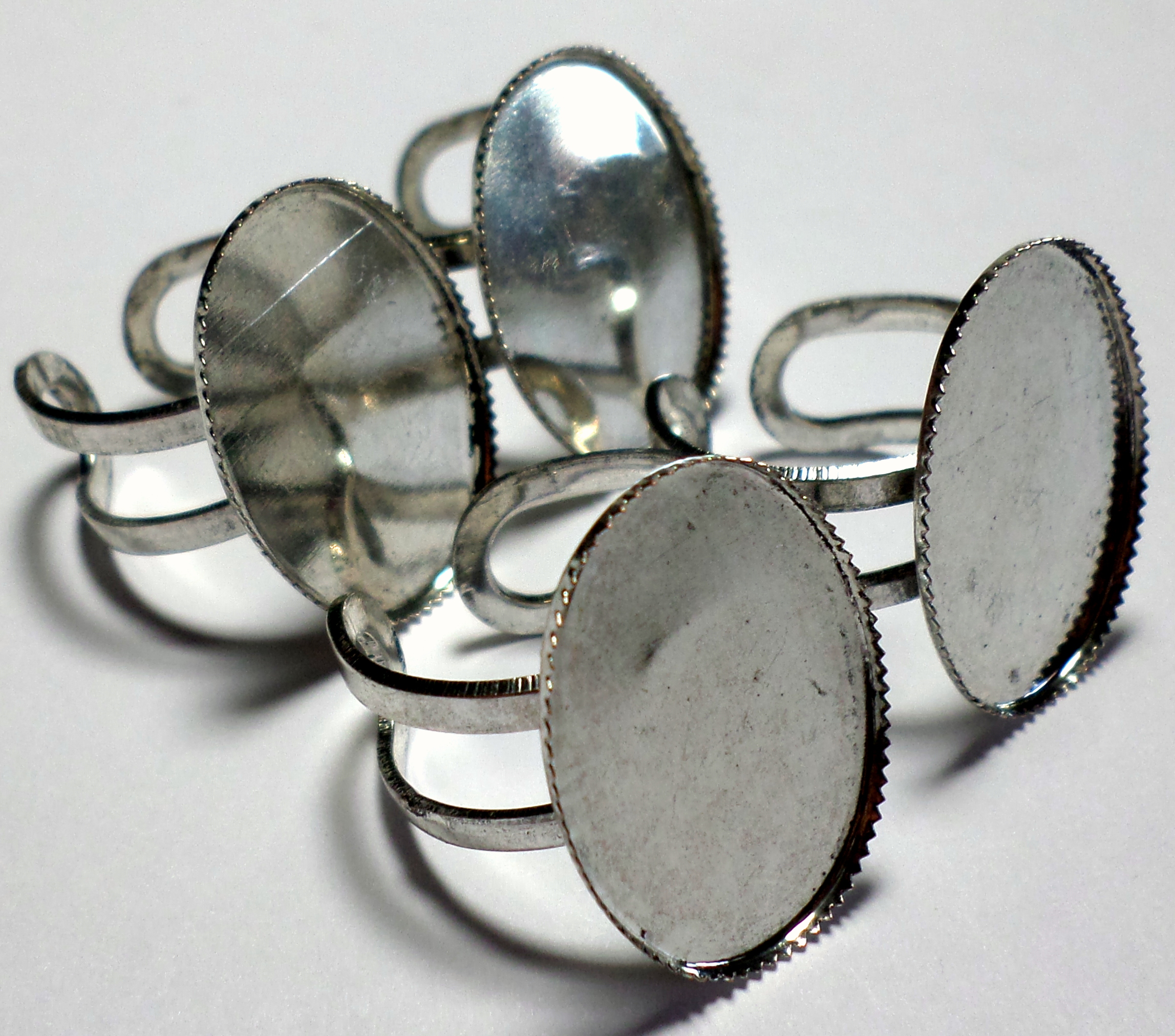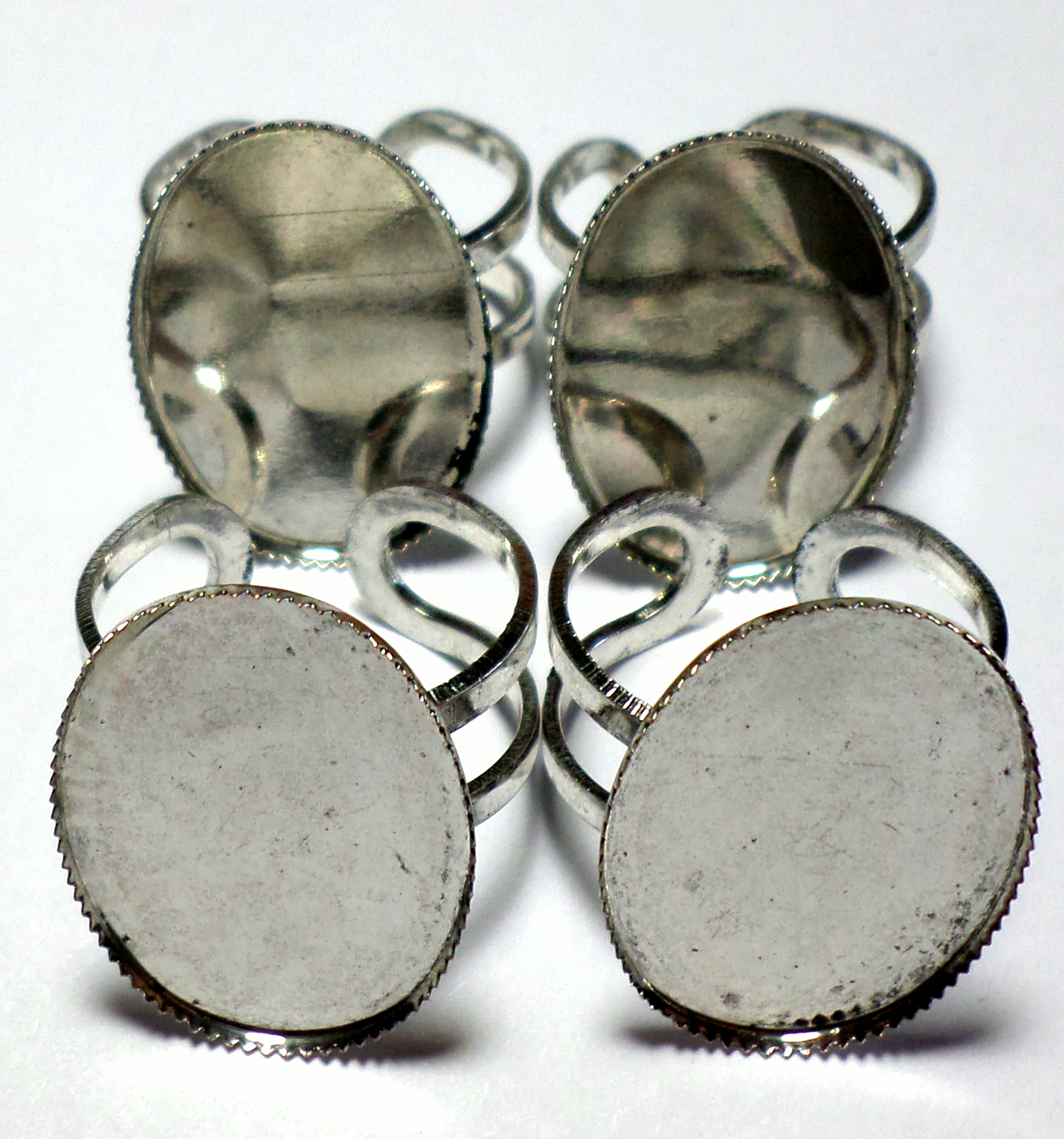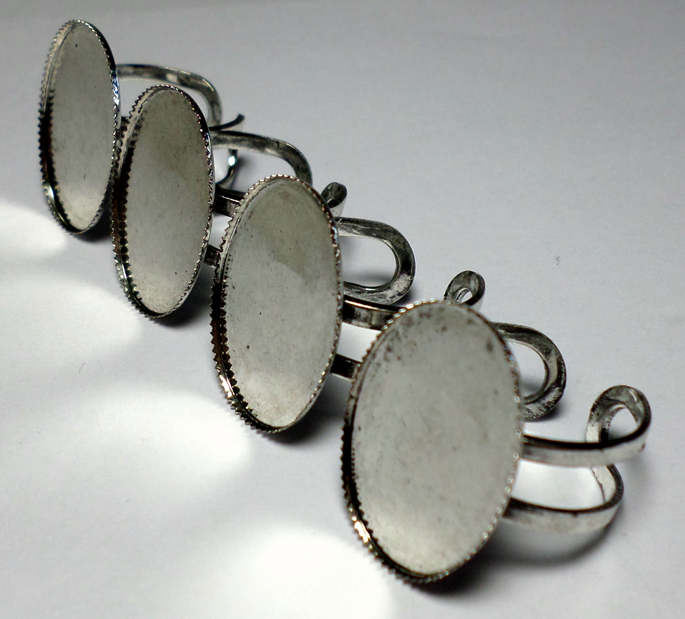 4 of 25x18 mm Antique Silver Modern Sturdy Adjustable Ring Settings, Nice