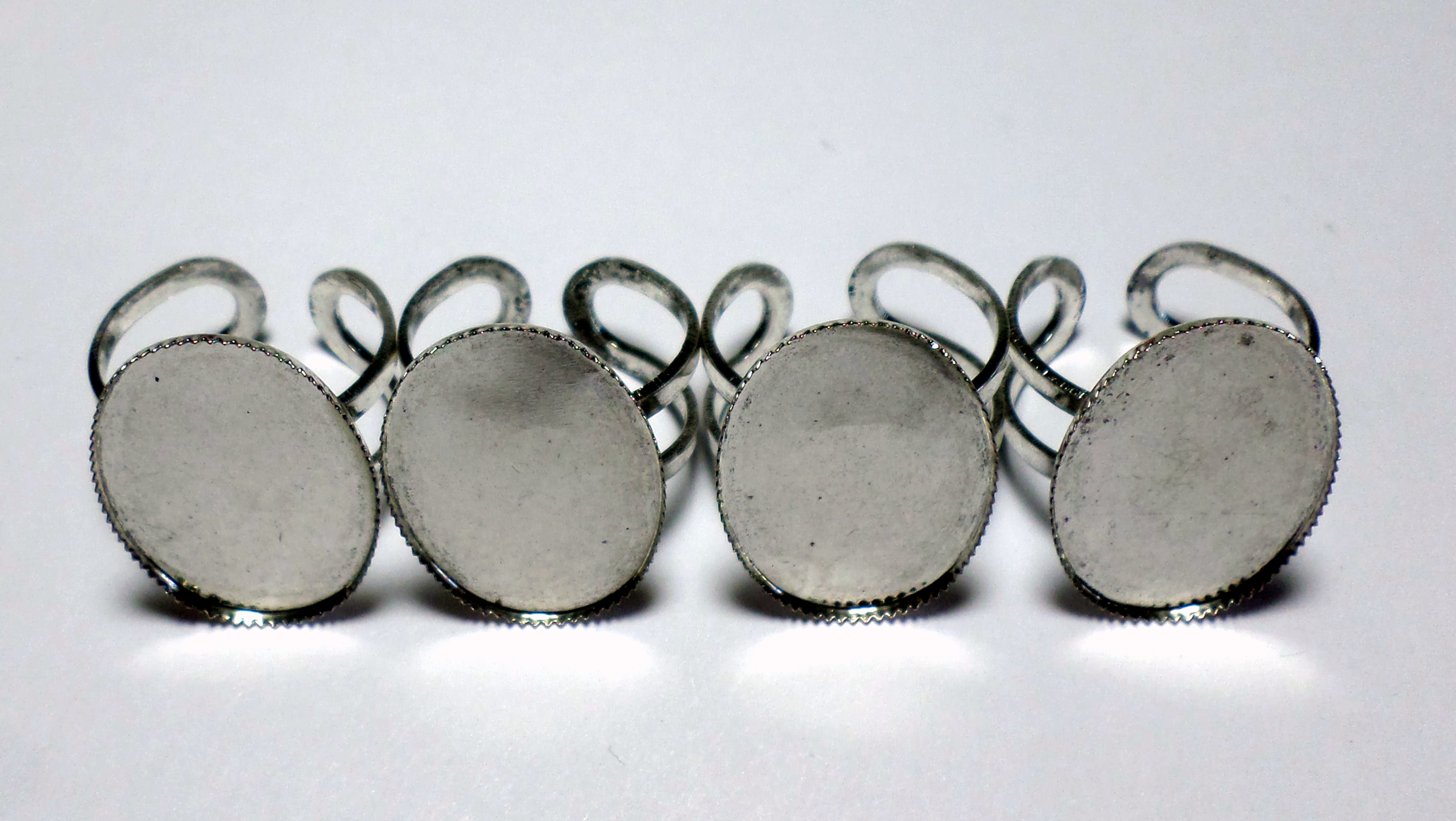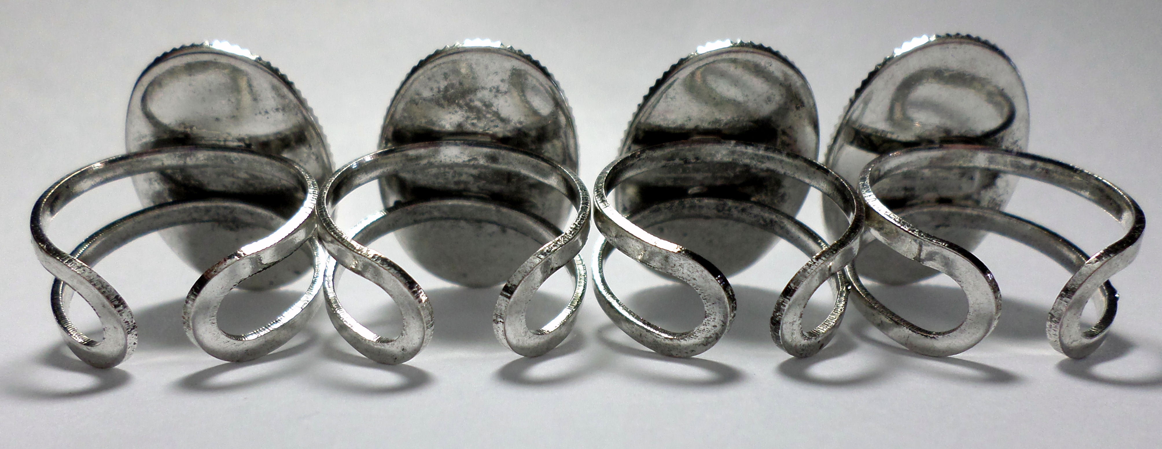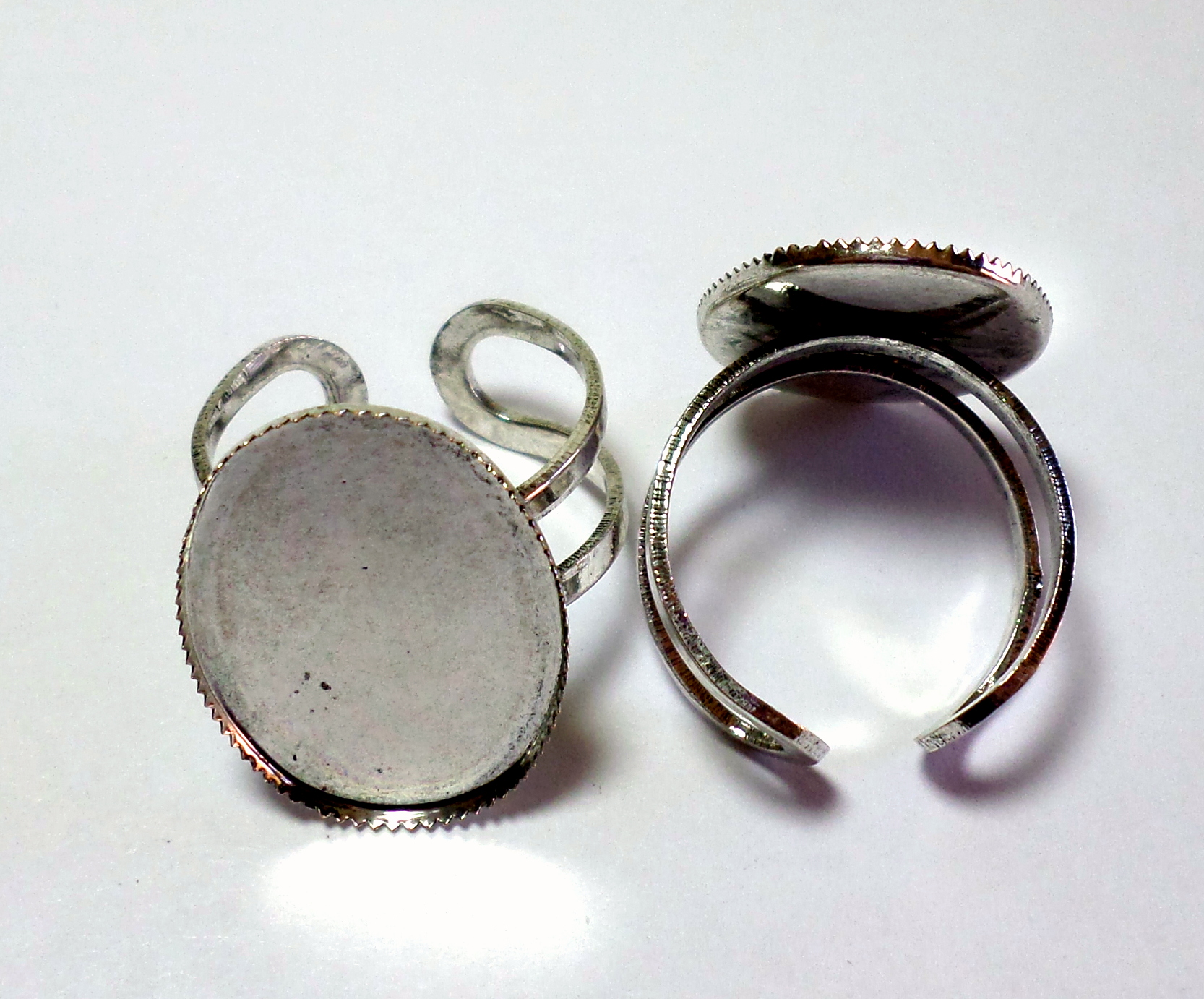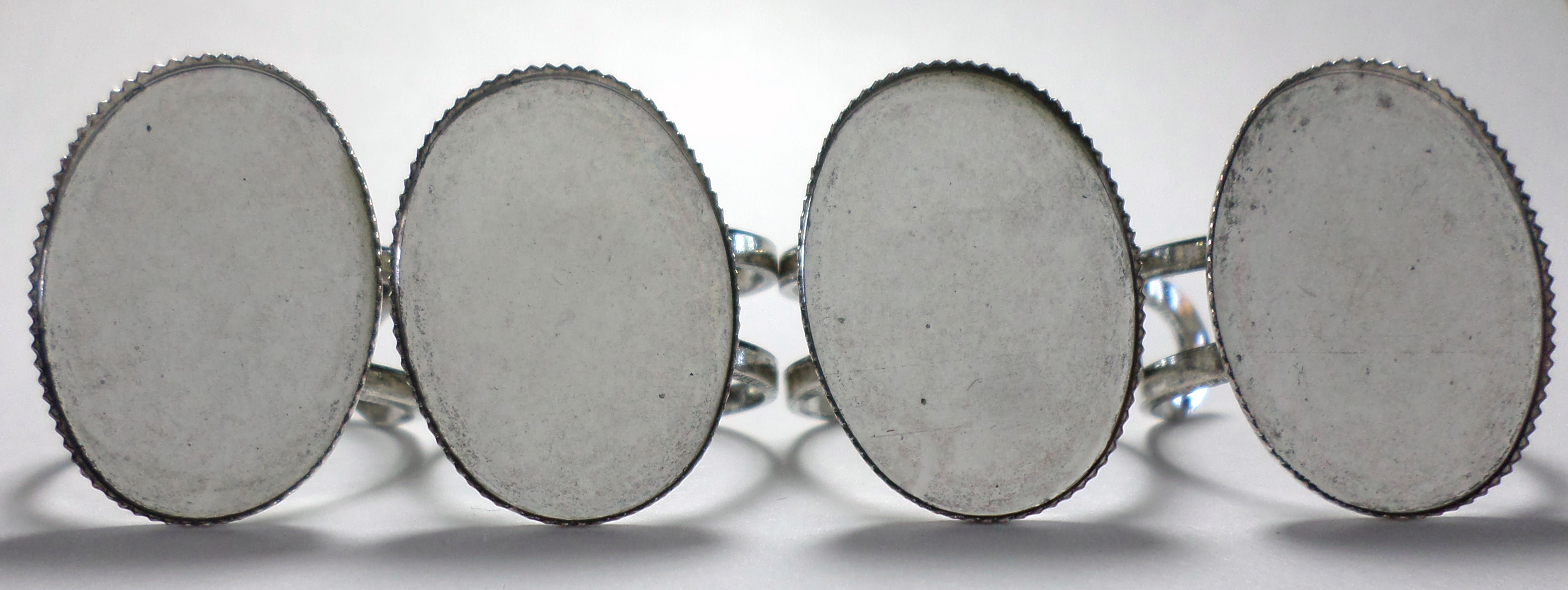 4 of 25x18 mm Antique Silver Modern Sturdy Adjustable Ring Settings, Nice