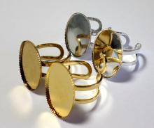 You are buying 4 of 25 mm x 18 mm Antique Silver Plated Modern Sturdy Adjustable Ring settings. These will work great for any cameos or cabs, and will have to be glued on. The biggest size that will fit in these are 25x18 mm. Since they are a solid back, you could go down in size a little if you had an odd size cameo or cab to try & fit. These are adjustable from size 7-15. These are lightweight and sturdy. I have lots of Great Bails, Bracelets, Cameos, Chains, Connectors, Jump Rings, Lockets, Pendants, Pins, Rings & Settings so, just look at all my listings. These are also offered in a group of 4 Colors as shown in the last 2 pictures item #112413920473. I also offer 3 other Colors of these in groups of 4 each. The Antique Gold is item #112415990159, Shiny Gold is item #361988004640, and the Shiny Silver is item #361987279645. I also have many other styles and sizes of rings so, look at all my listings.