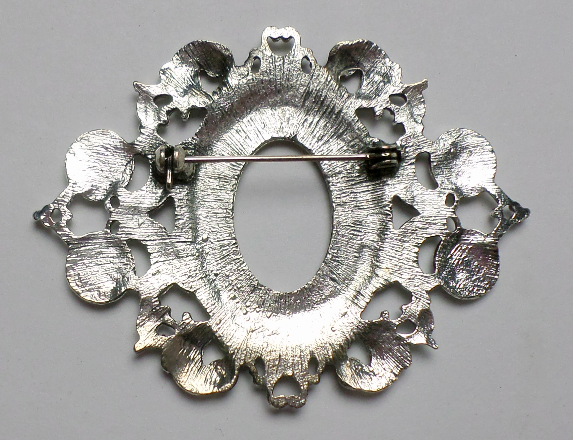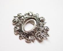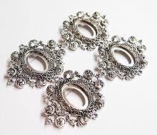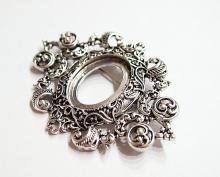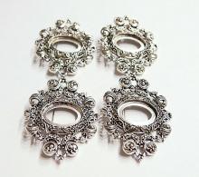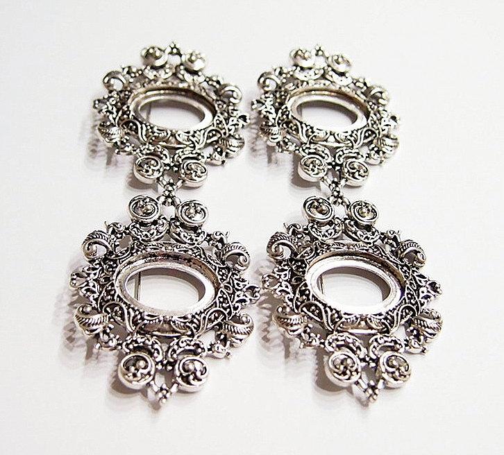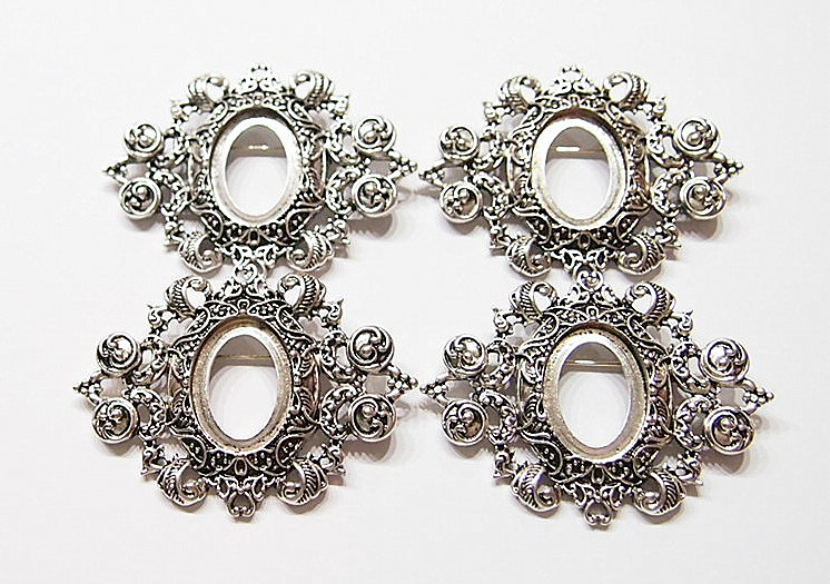 You are buying 4 of 25 mm x 18 mm Antique Silver Ornamental Hearts Art Deco Brooch Pin or Pendant Settings. These settings are originally from the 1900-1930's, I only had a few left and found a company to make these for me and they are gorgeous. These have a pin & latch on the back. These have Hearts at the top & bottom so you could put a chain through or Jump Ring (which I have 3 Colors & 2 Sizes of) & make this a pendant & use the bottom as a connector to embellish this gorgeous pin. The design is just delicate, but they are very solid, not flimsy like the new ones are. The outer dimensions are 62 mm x 47 mm. You will not be disappointed in the quality, it is excellent and if I was setting any cameos or cabs, I would use these. These will work great for anything you want to set in them, they will have to be glued in. I have lots of Great Bails, Bracelets, Cameos, Chains, Connectors, Jump Rings, Lockets, Pendants, Pins, Rings & Settings so, just look at all my listings. I have pin settings a lot like these in 4 Colors & 2 Styles in 18x13 mm.