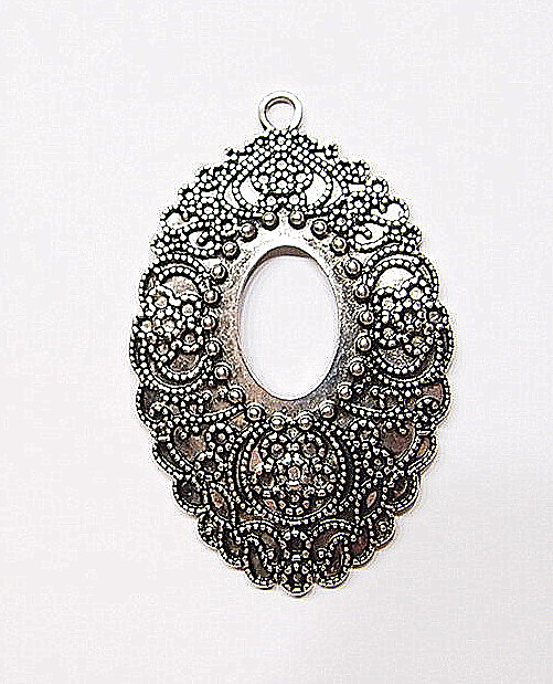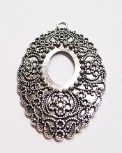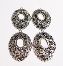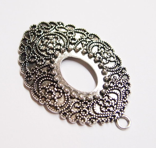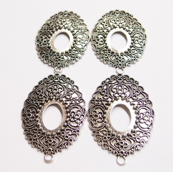 You are buying 4 of 25 mm x 18 mm Antique Silver Plated Beaded Victorian Style Pendant Settings. These settings have a very intricate Victorian beaded with Flowers Design. These have the look of the old Art Deco or Victorian Settings. These settings are originally from the 1900-1930's, I only had a few left and found a company to make these for me and they are gorgeous. These measure 68 mm in length x 44 mm wide including the loop at the top. The top has a nice size loop (3.7 mm) for your Chain or Cord or Jump Ring (which I have 3 Colors & 2 Sizes of). The design is just delicate, but they are very solid, not flimsy like some are. You will not be disappointed in the quality, it is excellent and if I was setting any cameos or cabs, I would use these. These will work great for any cameos or cabs, they will have to be glued in. I have lots of Great Bails, Bracelets, Cameos, Chains, Connectors, Jump Rings, Lockets, Pendants, Pins, Rings & Settings so, just look at all my listings. I also have these in Antique Gold item #360471679670.