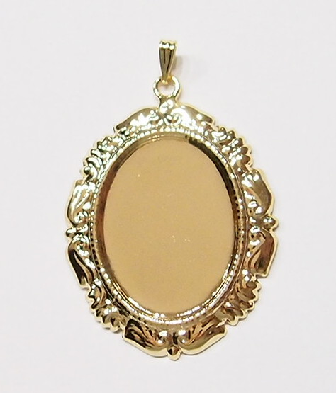 You are buying 4 of 25 mm x 18 mm Shiny Gold Plated Angel Wings Design Pendant Settings. These are lightweight & sturdy. These will work great for any cameos or cabs, they will have to be glued in. The biggest size that will fit in these are 25 mm x 18 mm. Since they are a solid back, you could go down in size a little if you had an odd size cameo or cab to try & fit. They have never been used, very nice looking. I have lots of Great Bails, Bracelets, Cameos, Chains, Connectors, Jump Rings, Lockets, Pendants, Pins, Rings & Settings so, just look at all my listings. I have these in 3 other Colors & in a group of 4 Colors as shown in the last picture item #360477489289. I also have Bracelets & Pendants in 40x30 mm with this same Pattern. This Color & pattern are also offered in 40x30 mm Item # 110911243349 & in a group of 4 Colors Item # 111387162618.