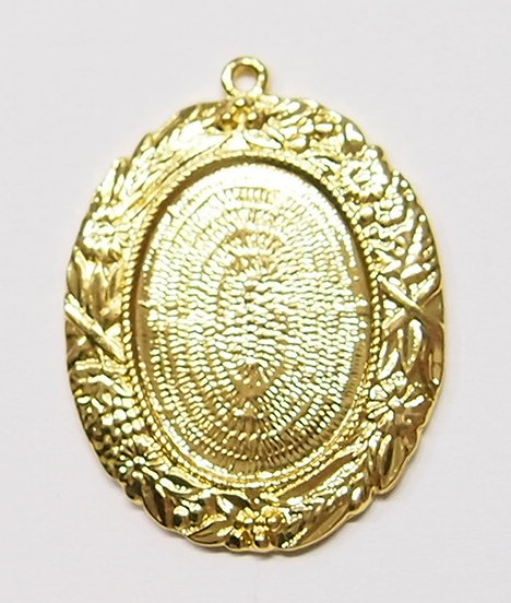 You are buying 4 of 25 mm x 18 mm Shiny Gold Plated Flowers & Leaf Pendant Settings. These are very pretty, and have a very intricate Flowers & Leaves design pattern around the settings. The top has a nice size loop (2 mm) for your Chain or Cord or Jump Ring (which I have 3 Colors & 2 Sizes of). The settings outer dimensions are 41 mm x 31 mm including the loop at the top. These settings are originally from the 1900-1930's, I only had a few left and found a company to make these for me and they are gorgeous. The design is just delicate, but they are very solid, not flimsy like the new ones are. You will not be disappointed in the quality, it is excellent and if I was setting any cameos, I would use these. These will work great for any cameos or cabs, they will have to be glued in. I have lots of Great Bails, Bracelets, Cameos, Chains, Connectors, Jump Rings, Lockets, Pendants, Pins, Rings & Settings so, just look at all my listings. I have these in 2 other Colors & in a group of 3 Colors as shown in the last picture item #110911243316.