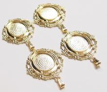 You are buying 4 of 25 mm x 18 mm Shiny Gold Plated Old Style Art Nouveau Pendant Settings. These settings are originally from the 1900-1930's, I only had a few left and found a company to make these for me and they are gorgeous. The design is just delicate, but they are very solid, not flimsy like the new ones are. There is an Art Nouveau look to them. Since they are a solid back, you could go down in size a little if you had an odd size cameo or cab to try & fit. You will not be disappointed in the quality, it is excellent and if I was setting any cameos or cabs, I would use these. These will work great for any cameos or cabs, they will have to be glued in. I have lots of Great Bails, Bracelets, Cameos, Chains, Connectors, Jump Rings, Lockets, Pendants, Pins, Rings & Settings so, just look at all my listings. I have these in 3 other Colors & in a group of 4 Colors as shown in the last picture item #112469036620.
