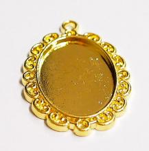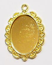 You are buying 4 of 25 mm x 18 mm Shiny Gold Plated Oval Scalloped Flower Design Pendant Settings. They have a scalloped Flowered Design around the edge of the pendant setting. The top has a nice size loop (2.6 mm) for your Chain or Cord or Jump Ring (which I have 3 Colors & 2 Sizes of). These are Glue in settings and are very sturdy. There is a place to add a small crystals at the top & bottom or just leave them blank, as they look just fine the way they are. These have never been used. Since they are a solid back, you could go down in size a little if you had an odd size cameo or cab to try & fit. Everything is solidly made from the setting to the pendant bail. I have lots of Great Bails, Bracelets, Cameos, Chains, Connectors, Jump Rings, Lockets, Pendants, Pins, Rings & Settings so, just look at all my listings. I have these in 3 other Colors & in a group of 4 Colors as shown in the last picture item #360805387231, sold separately.